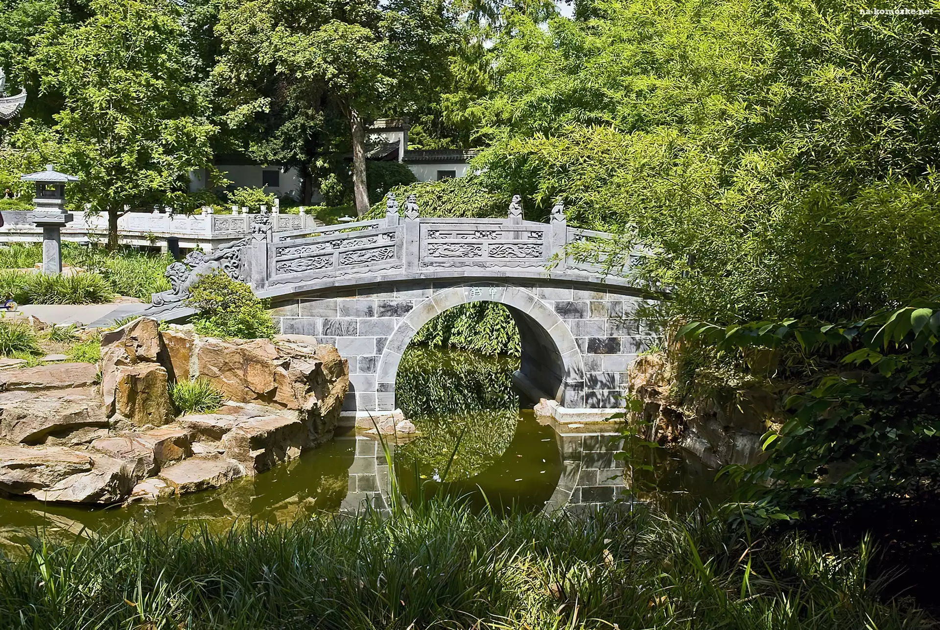 Ogród, Mostek, Chiński, Rzeczka na Komórkę