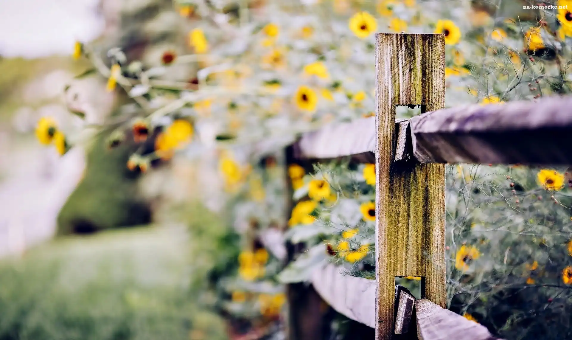 Ogród, Żółte, Kwiaty, Drewniany, Płot na Komórkę