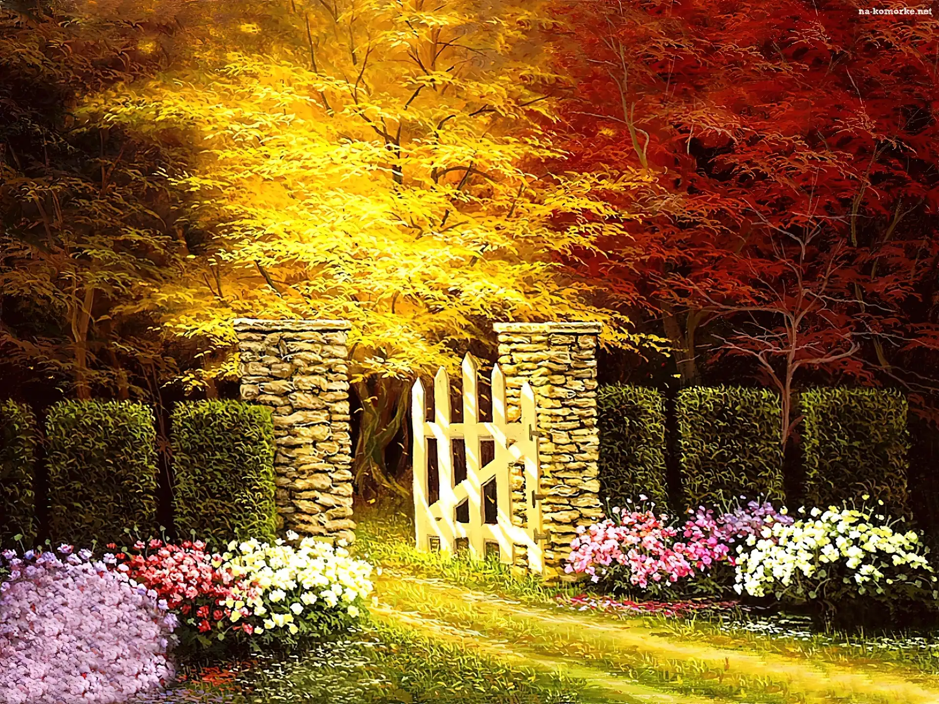 Ogród, Kwiaty, Droga, Bramka na Komórkę
