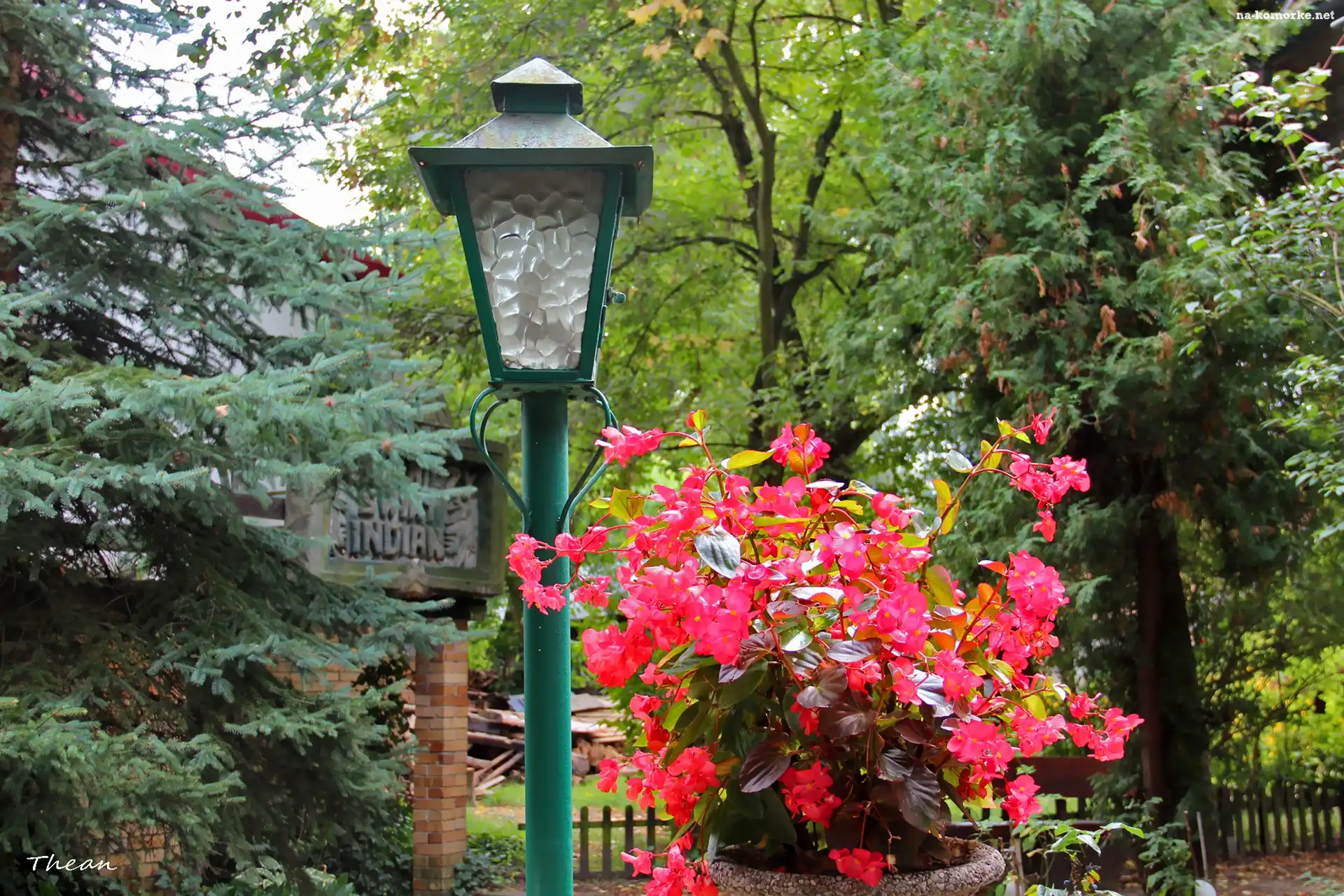 Ogród, Latarnia, Drzewa, Kwiaty na Komórkę