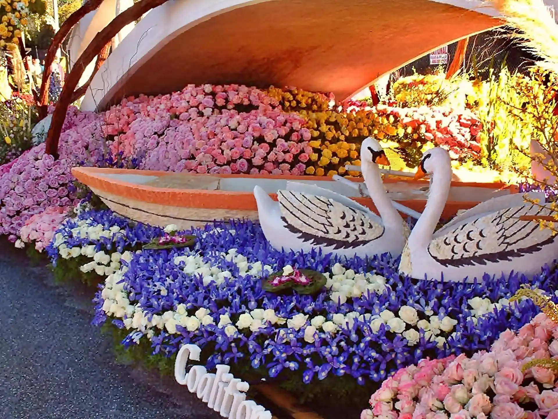 Ogród, Kwiaty, Dwa, Łabędzie na Komórkę