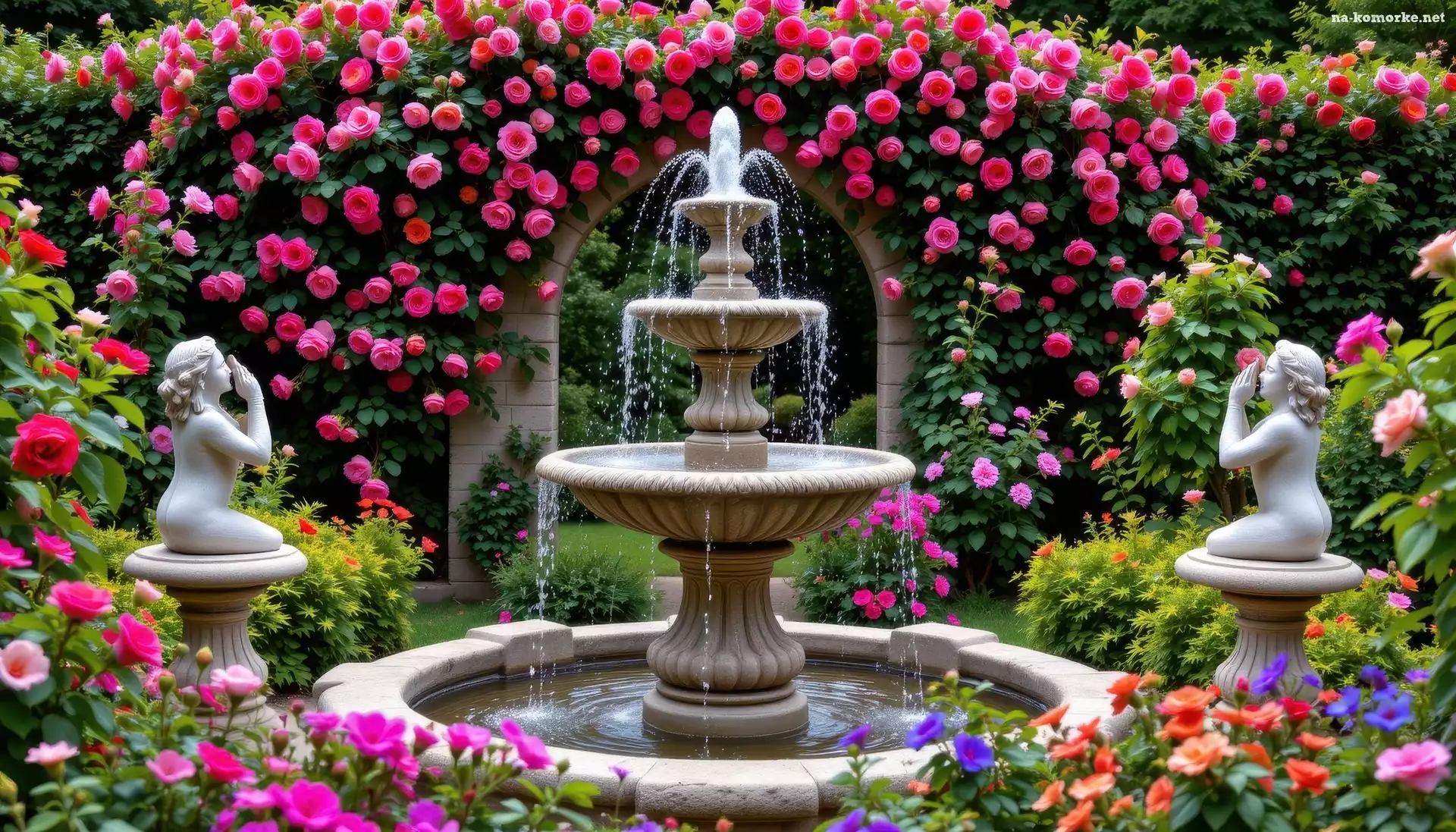 Ogród, Róże, Fontanna na Komórkę