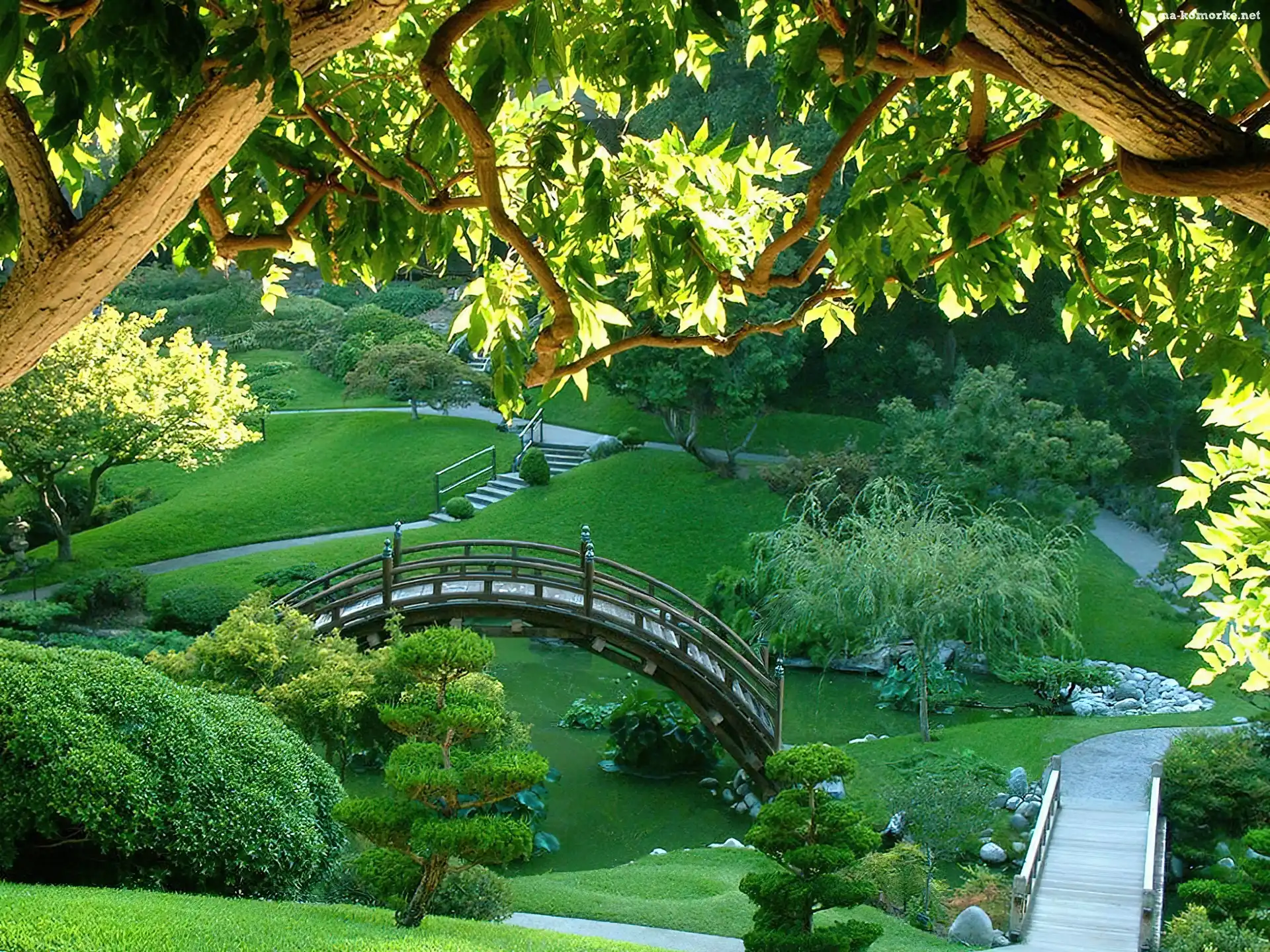 Ogród, Drzewa, Japoński, Mostek na Komórkę