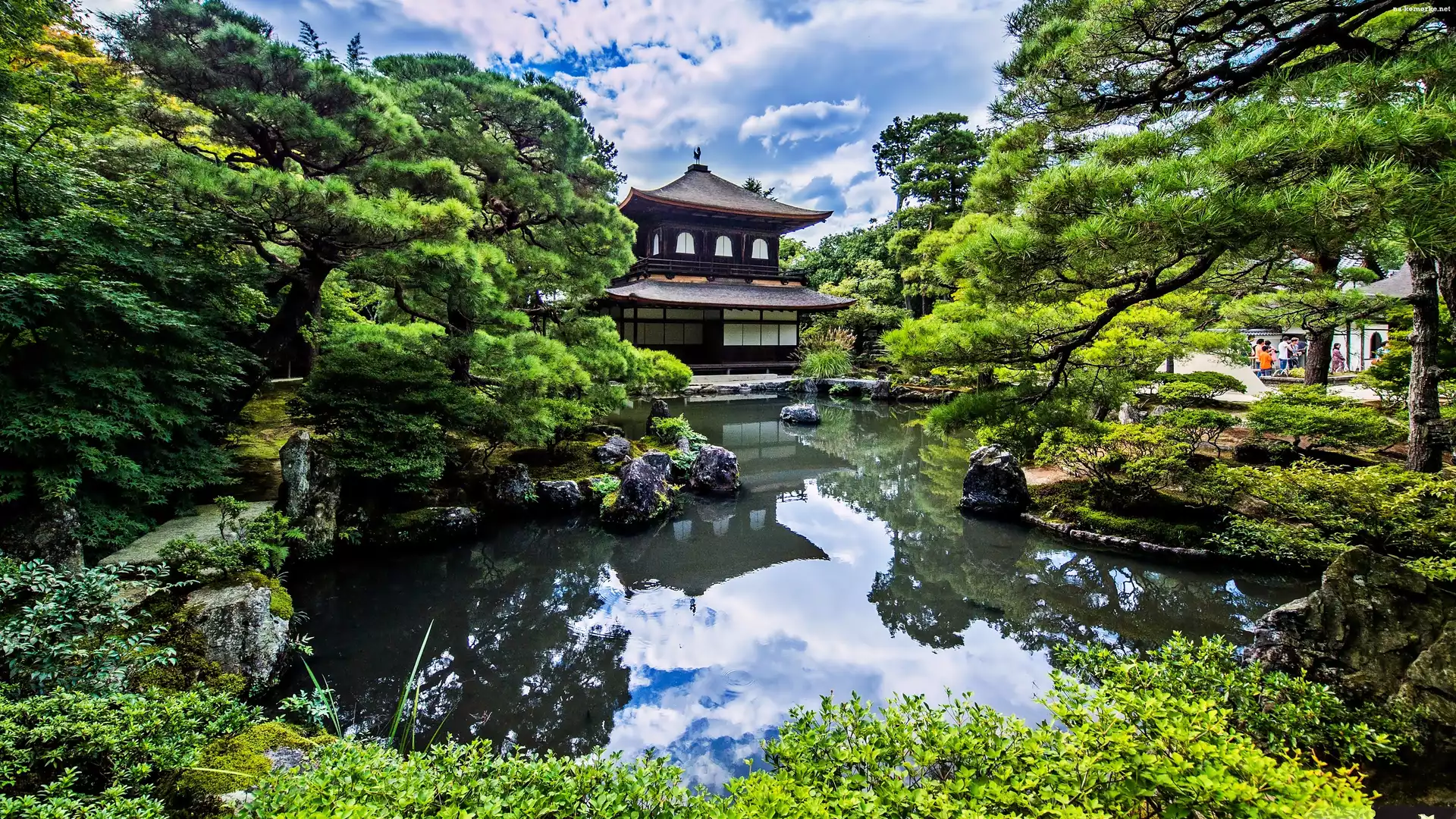 Ogród, Świątynia, Japoński, Staw na Komórkę