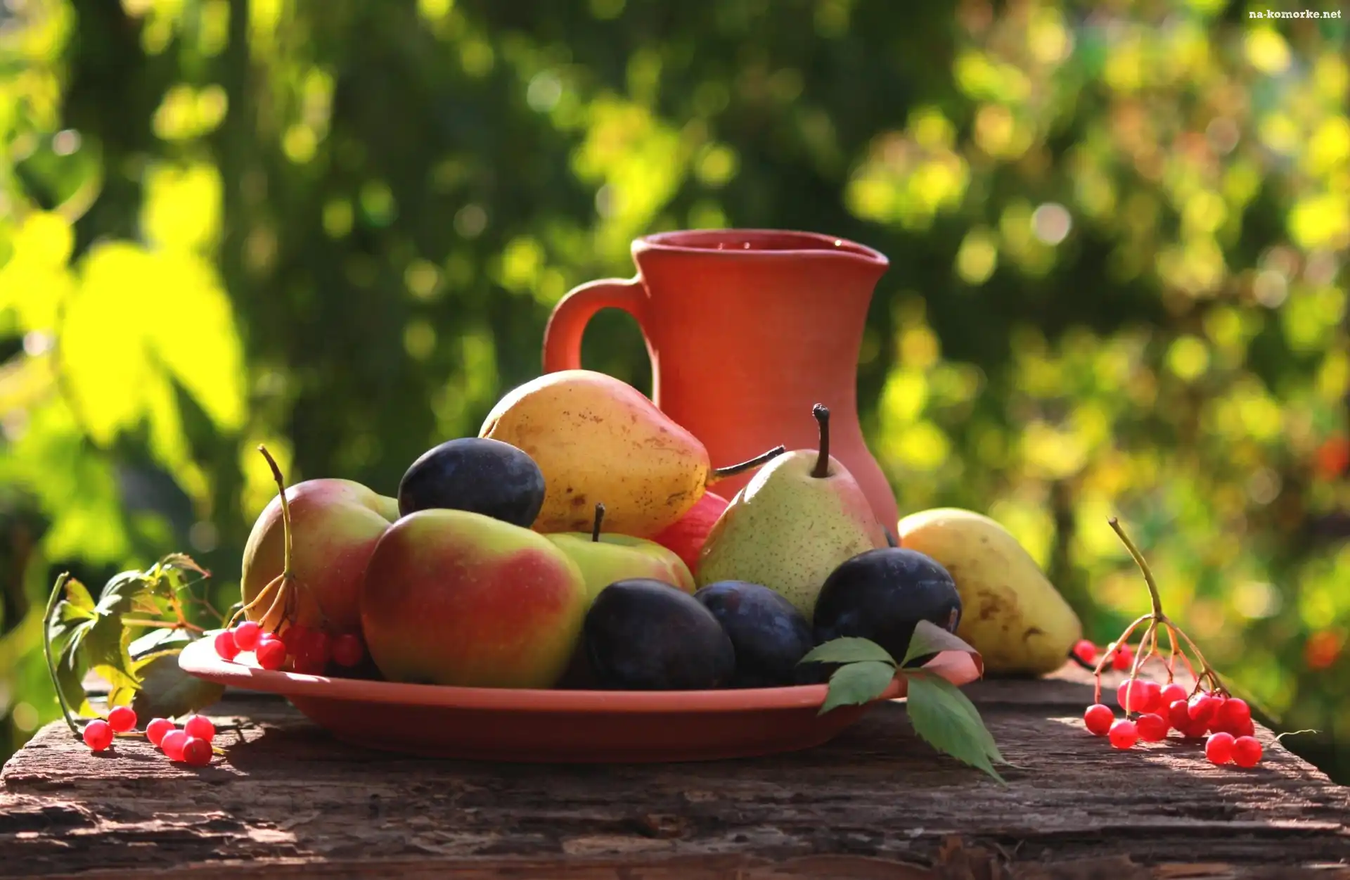 Światło, Owoce, Jesieni, Ogród, Ławka na Komórkę