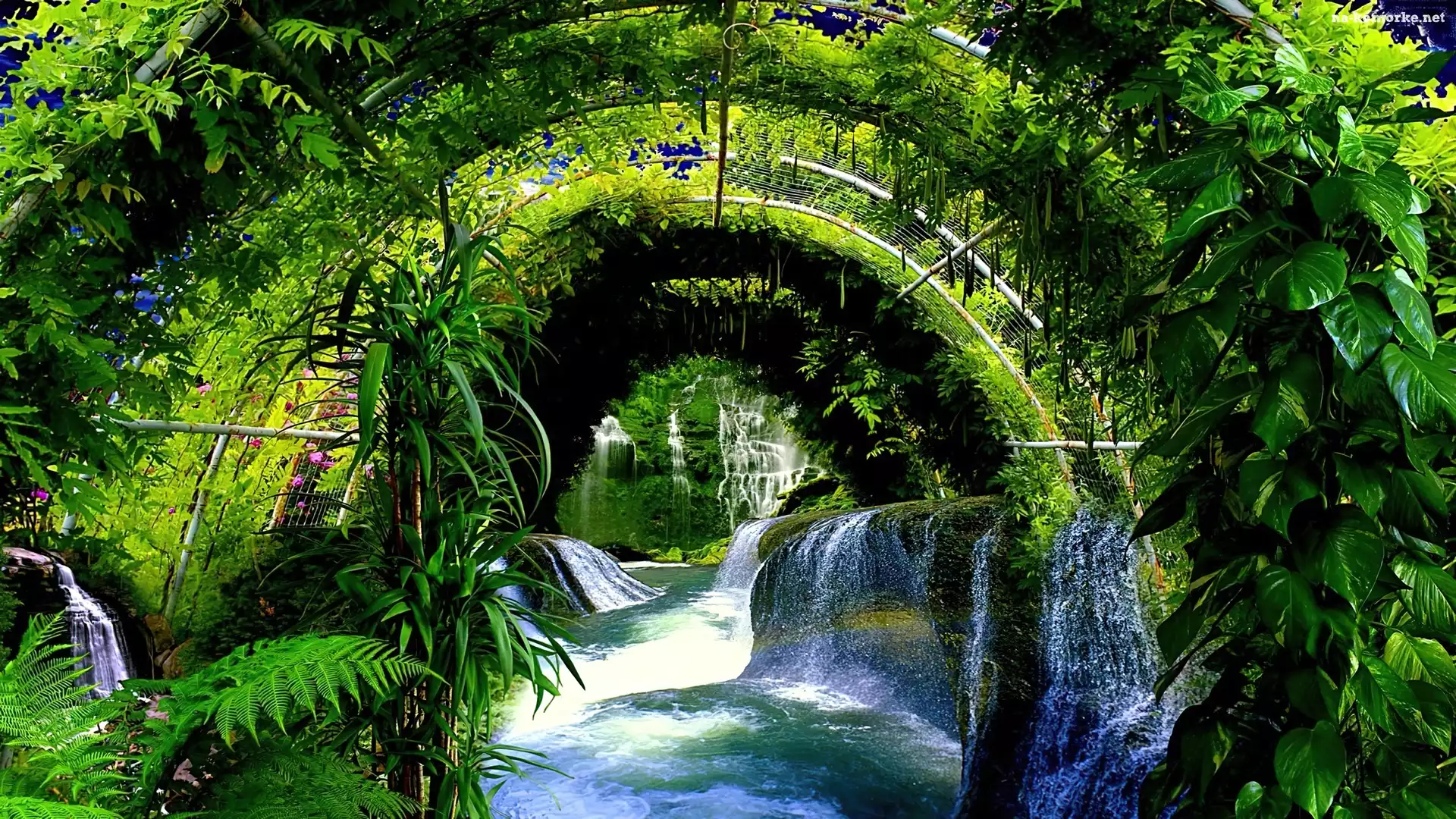 Ogród, Wodospady, Pergola, Zieleń na Komórkę