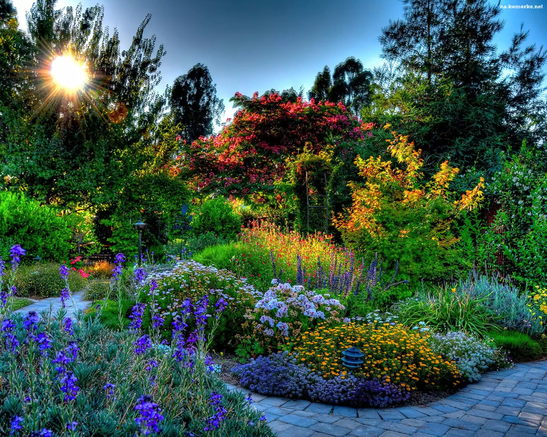 Piękny, Ogród, Słońce na Komórkę