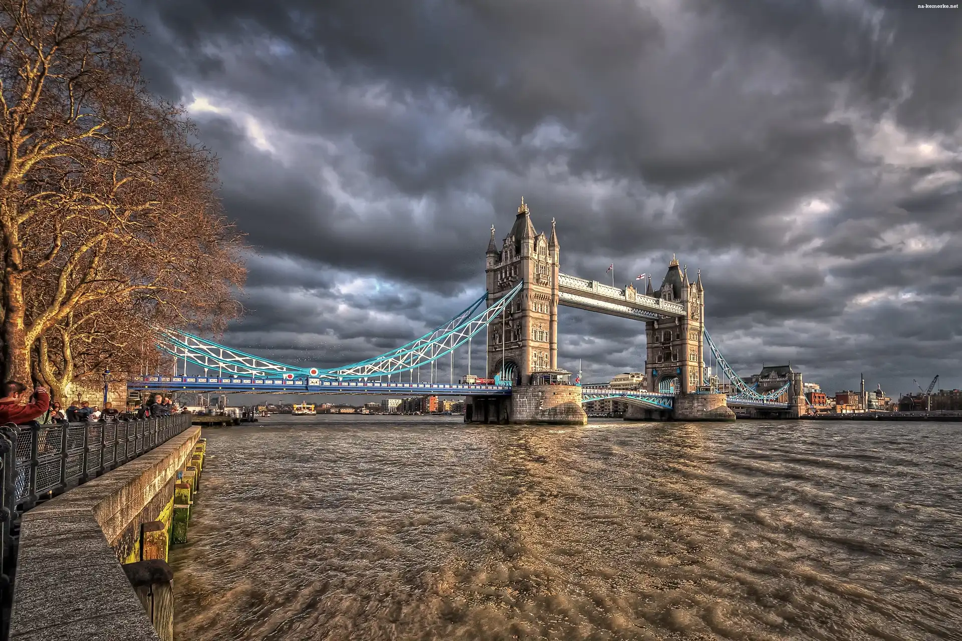 Ogrodzenie, Most, Rzeka, Chmury, Drzewo na Komórkę