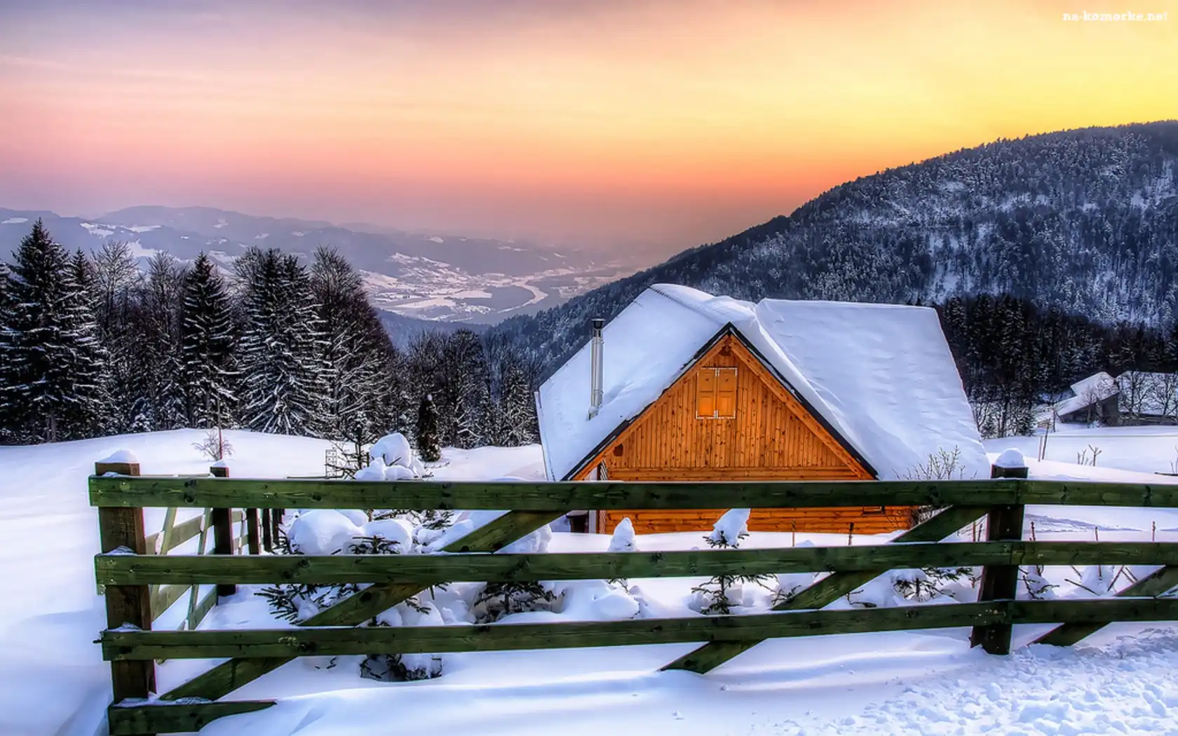 Ogrodzenie, Góry, Lasy, Domek, Zima na Komórkę