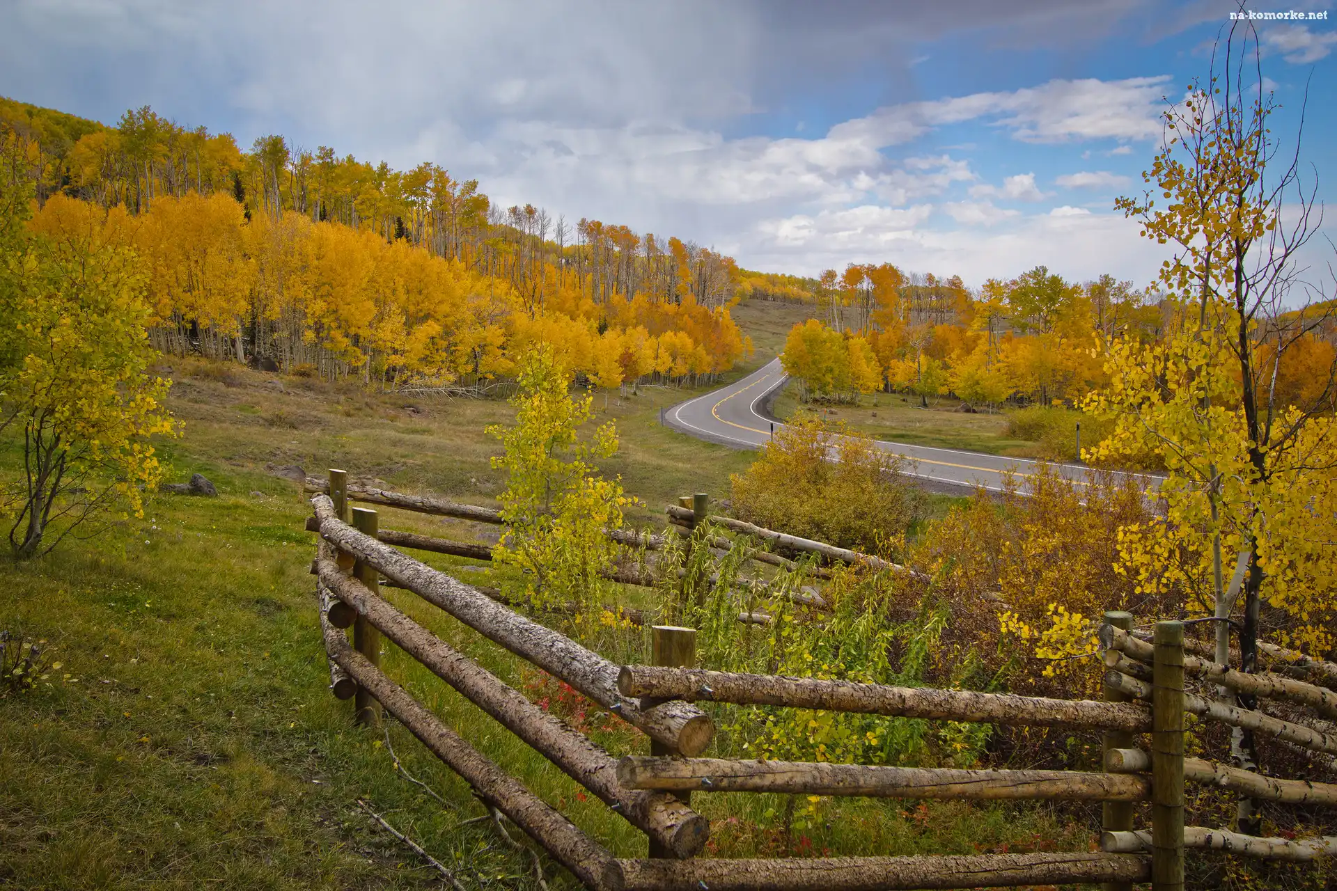 Ogrodzenie, Wzgórze, Las, Jesień, Droga na Komórkę