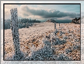 Słupy, Pole, Drewniane, Ogrodzenie, Trawa, Oszroniona na Komórkę