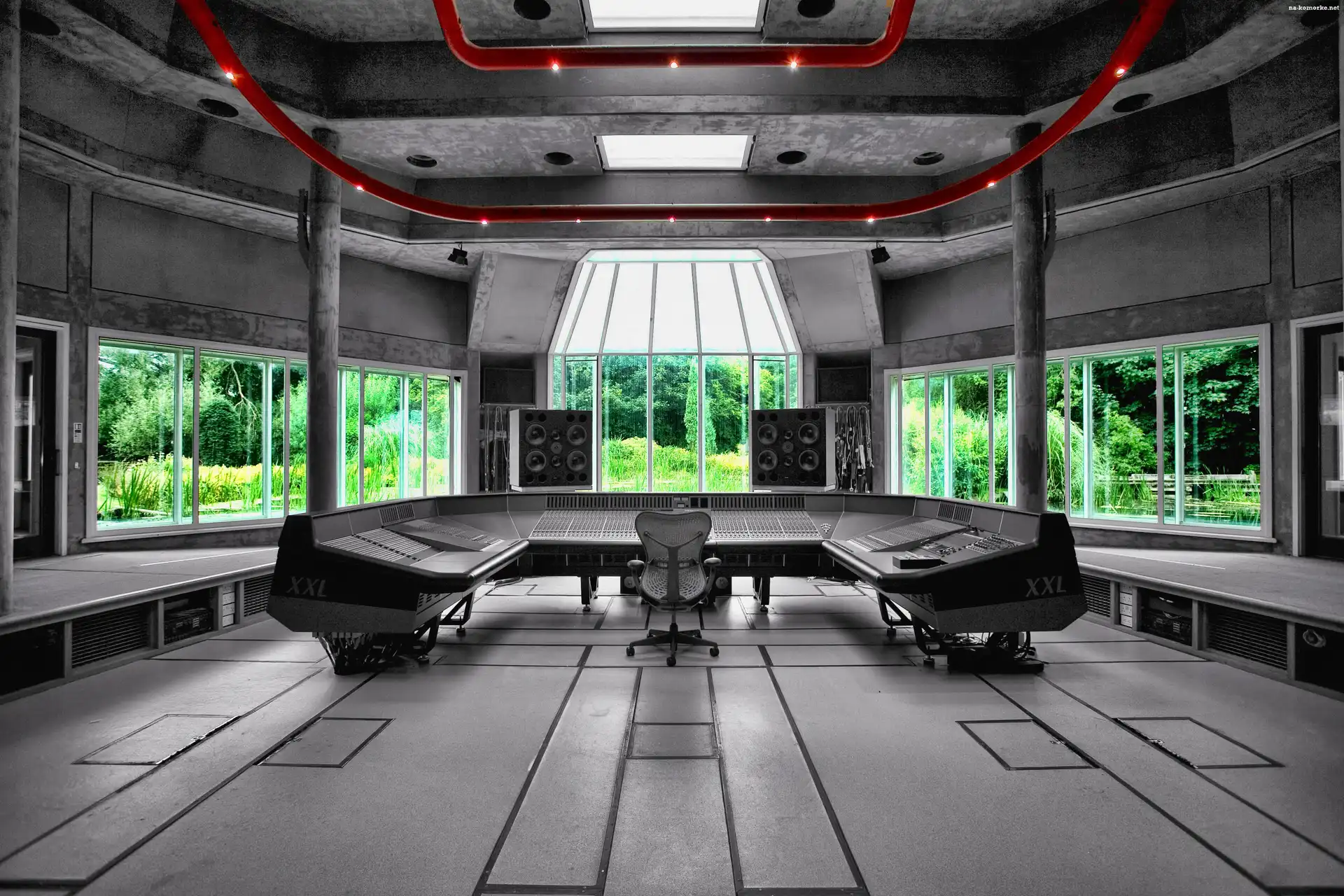 Okna, Studio, Nagraniowe, Stół, Głośniki na Komórkę