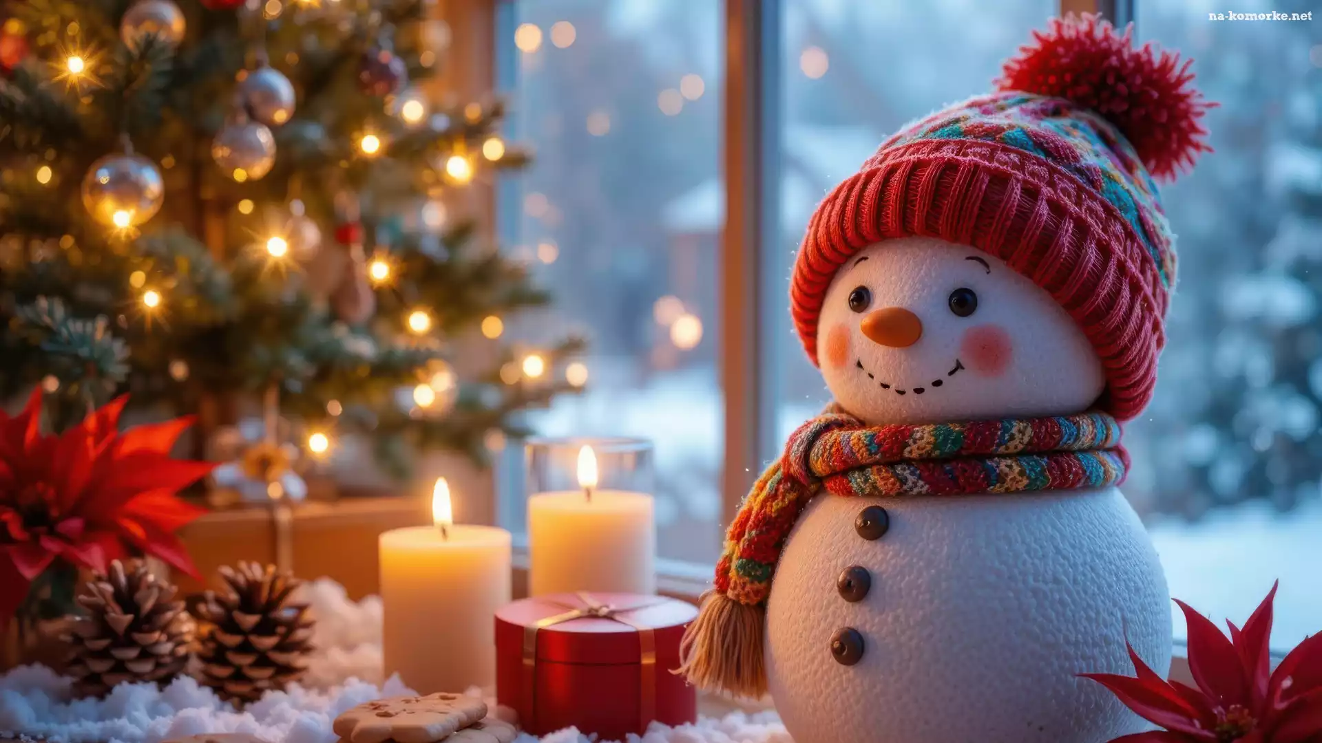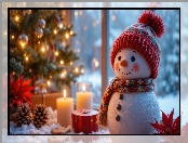 Świąteczne, Okno, Choinka, Bałwanek, Świece na Komórkę