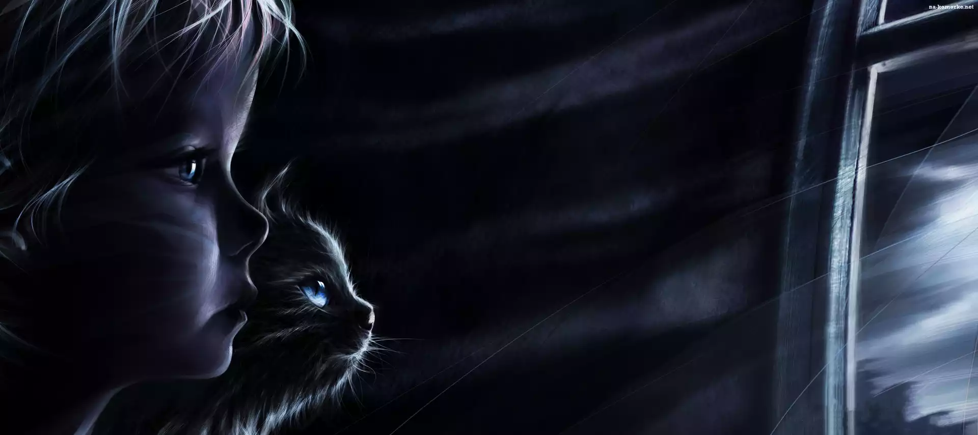 Okno, Grafika, Chłopiec, Dziecko, Kot na Komórkę
