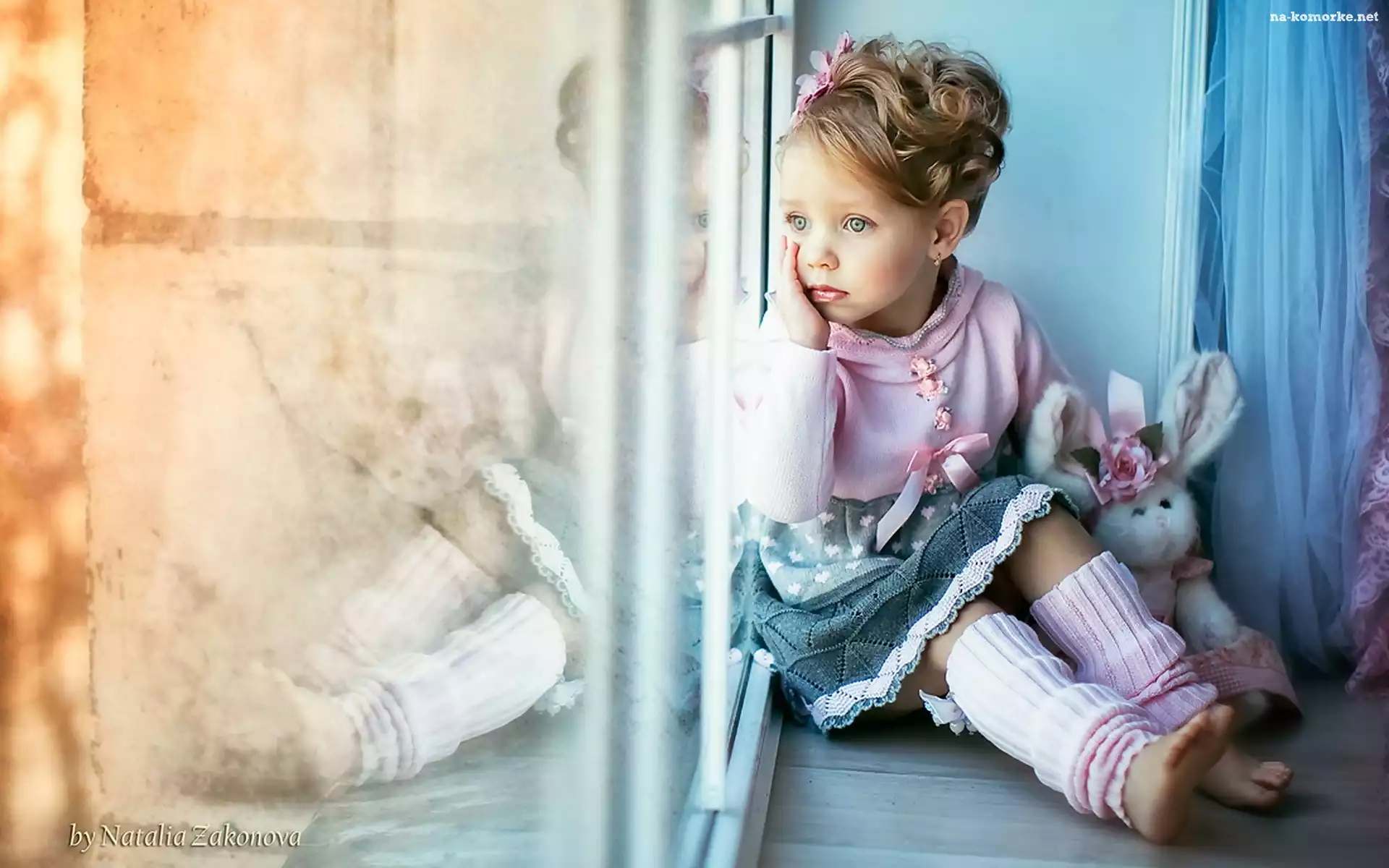 Okno, Króliczek, Dziewczynka, Zabawka na Komórkę
