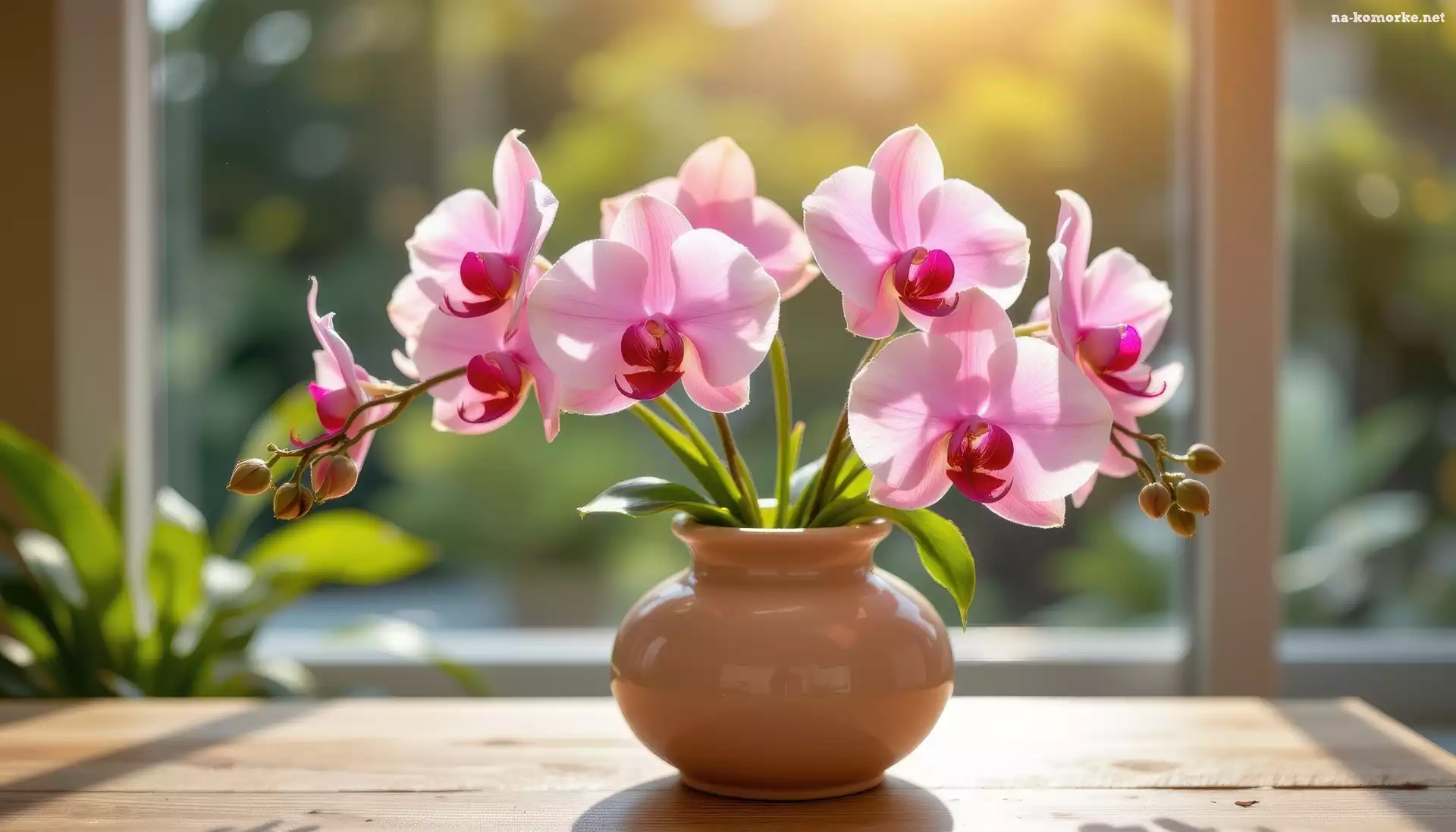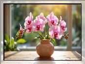 Wazon, Kwiaty, Orchidea, Okno, Storczyki, Różowe na Komórkę
