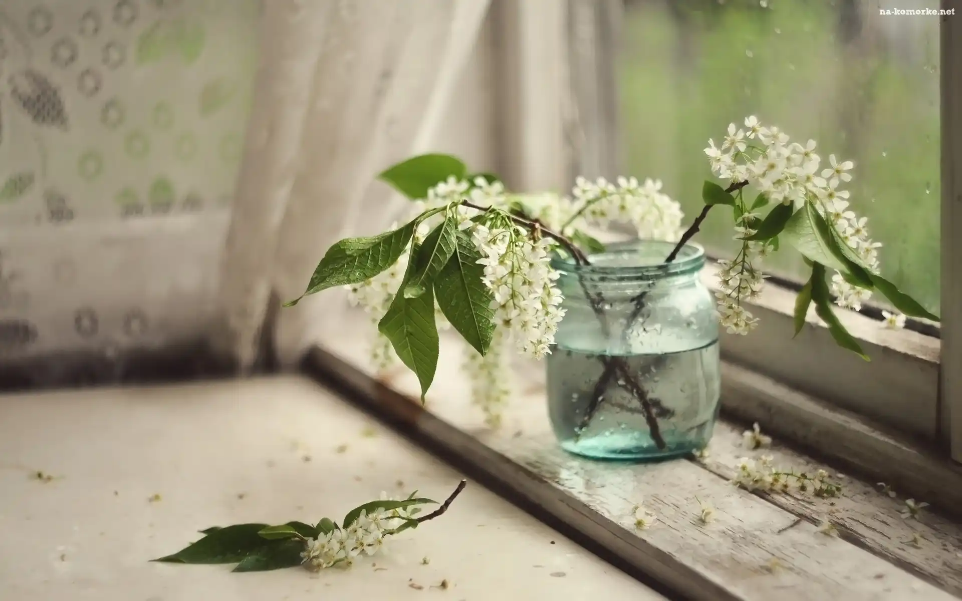 Okno, Kwiaty, Czeremcha, Wazon, Parapet na Komórkę