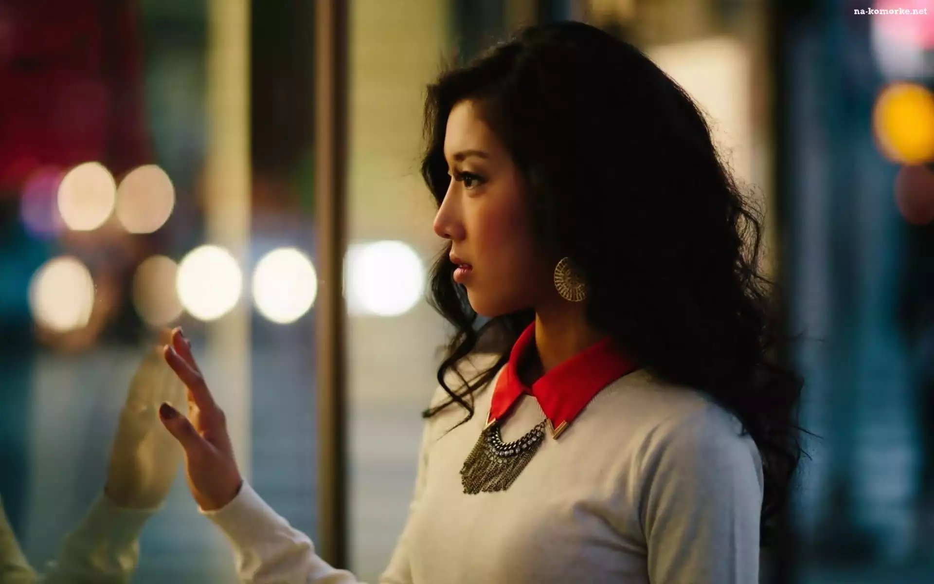 Zamyślona, Okno, Blask, Kobieta, Azjatka, Naszyjnik, Makijaż na Komórkę