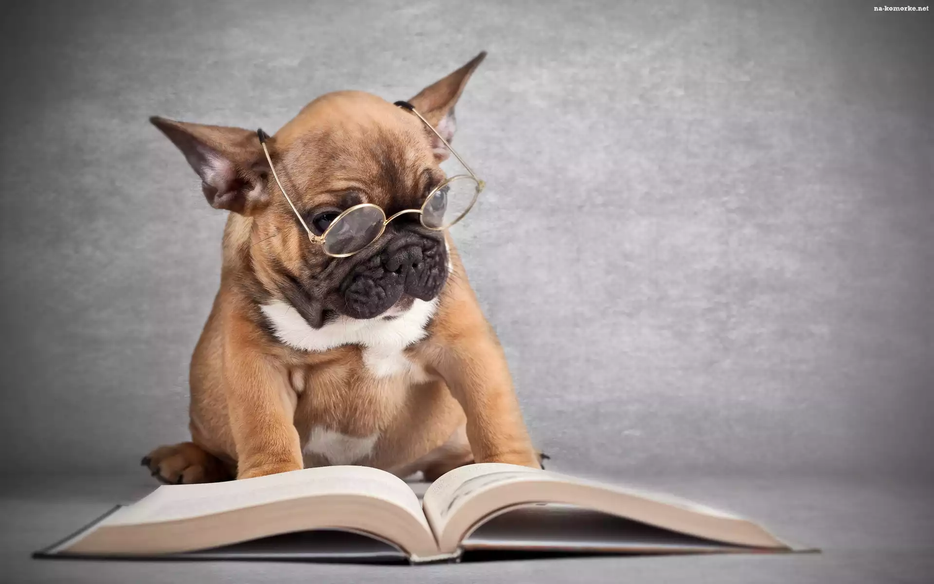 Pies, Buldog francuski, Okulary, Książka na Komórkę