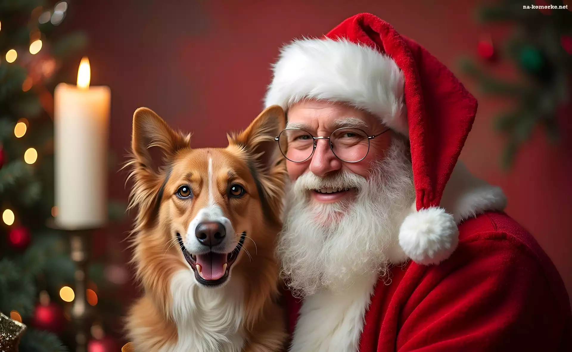 Czapka, Pies, Mikołaj, Okulary, Święty, Uśmiech na Komórkę
