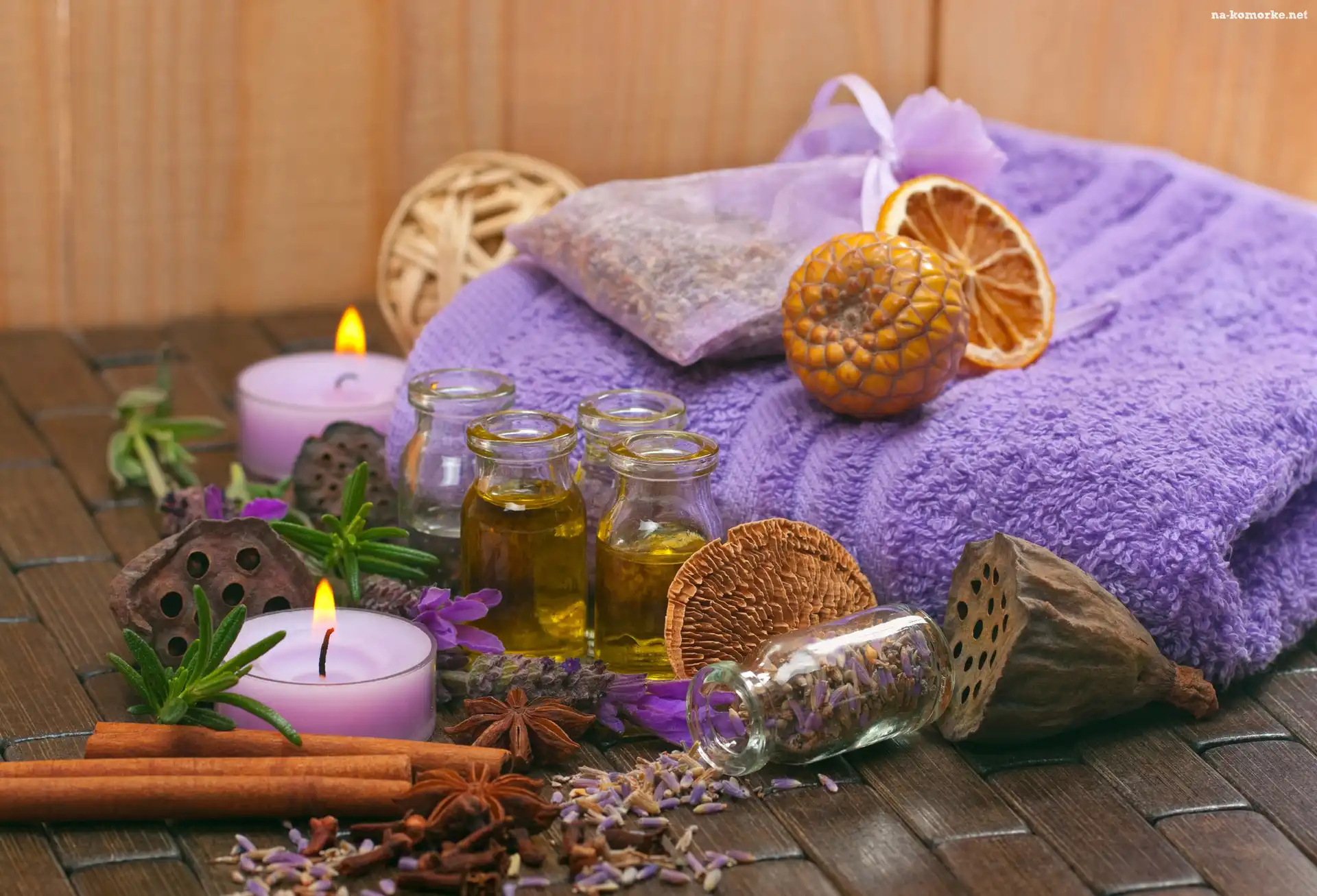Olejki, SPA, Ręcznik, Świeczki, Buteleczki na Komórkę