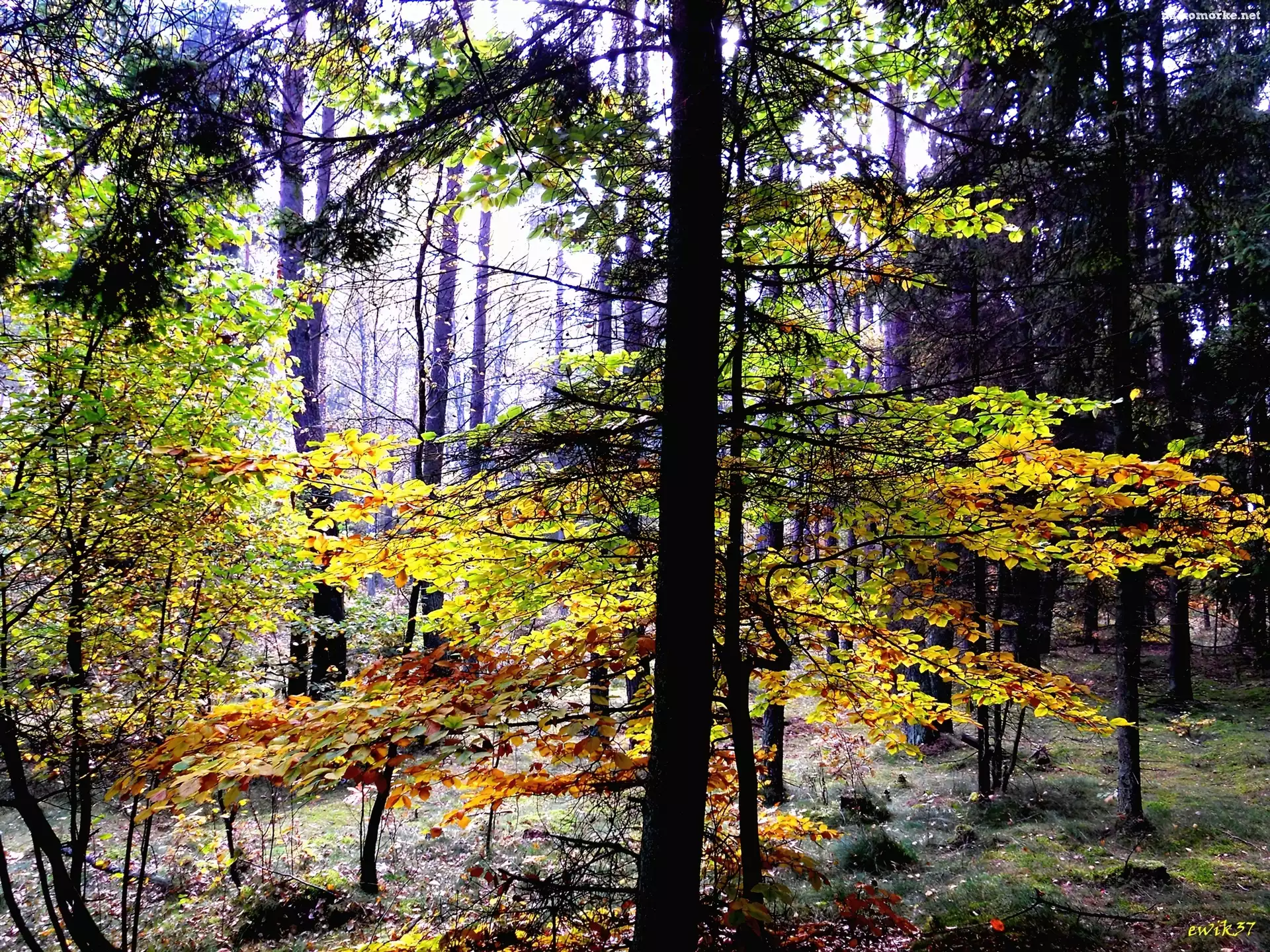 Żółte, Wysokie, Las, Liście, Drzewa, Zielone na Komórkę
