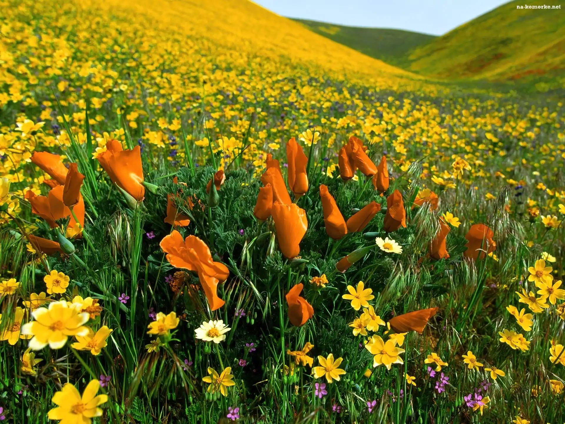 Łąka, Kwiaty, Żółte, Pomarańczowe na Komórkę