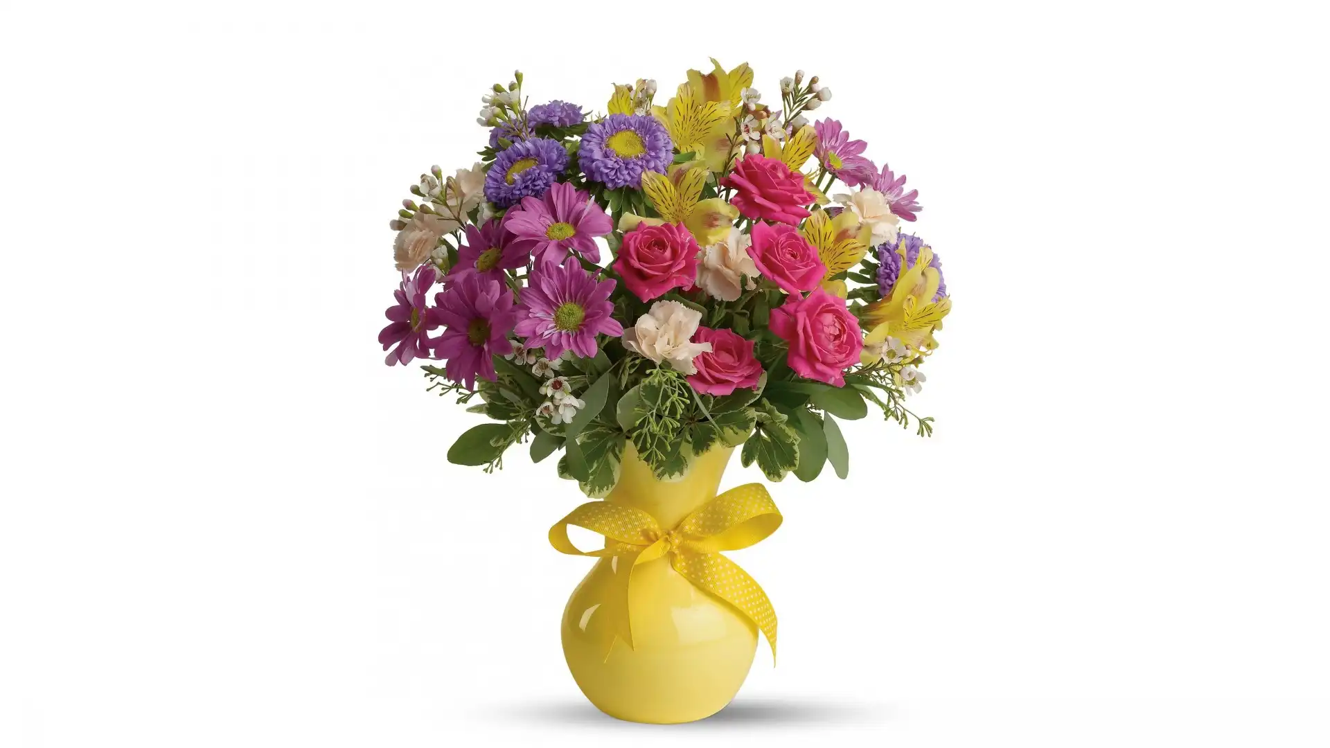 Bukiet, Żółty, Wazon, Kwiaty, Róże, Alstremeria, Chryzantemy na Komórkę