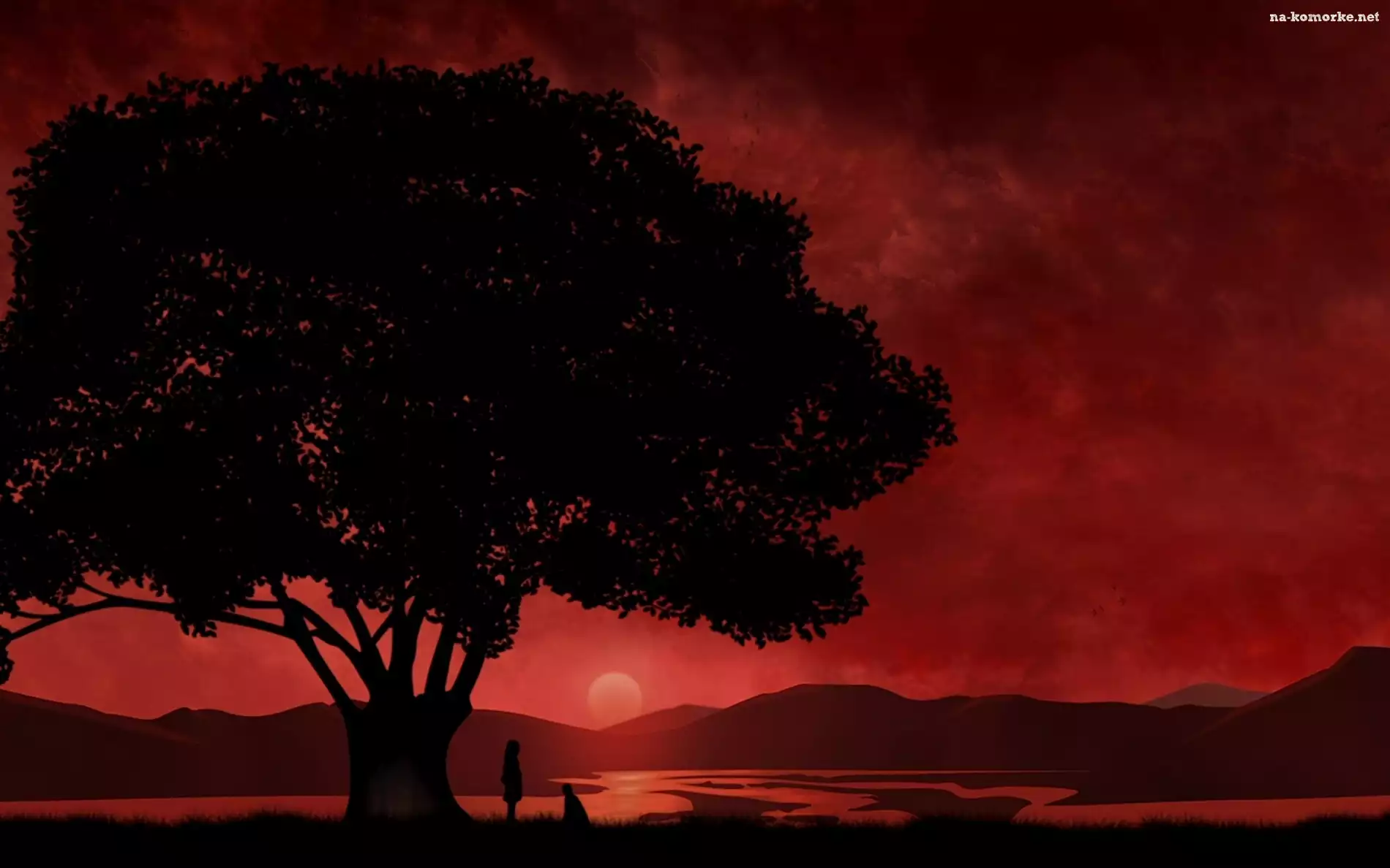 Ona, Zachód, Słońca, Drzewo, On na Komórkę
