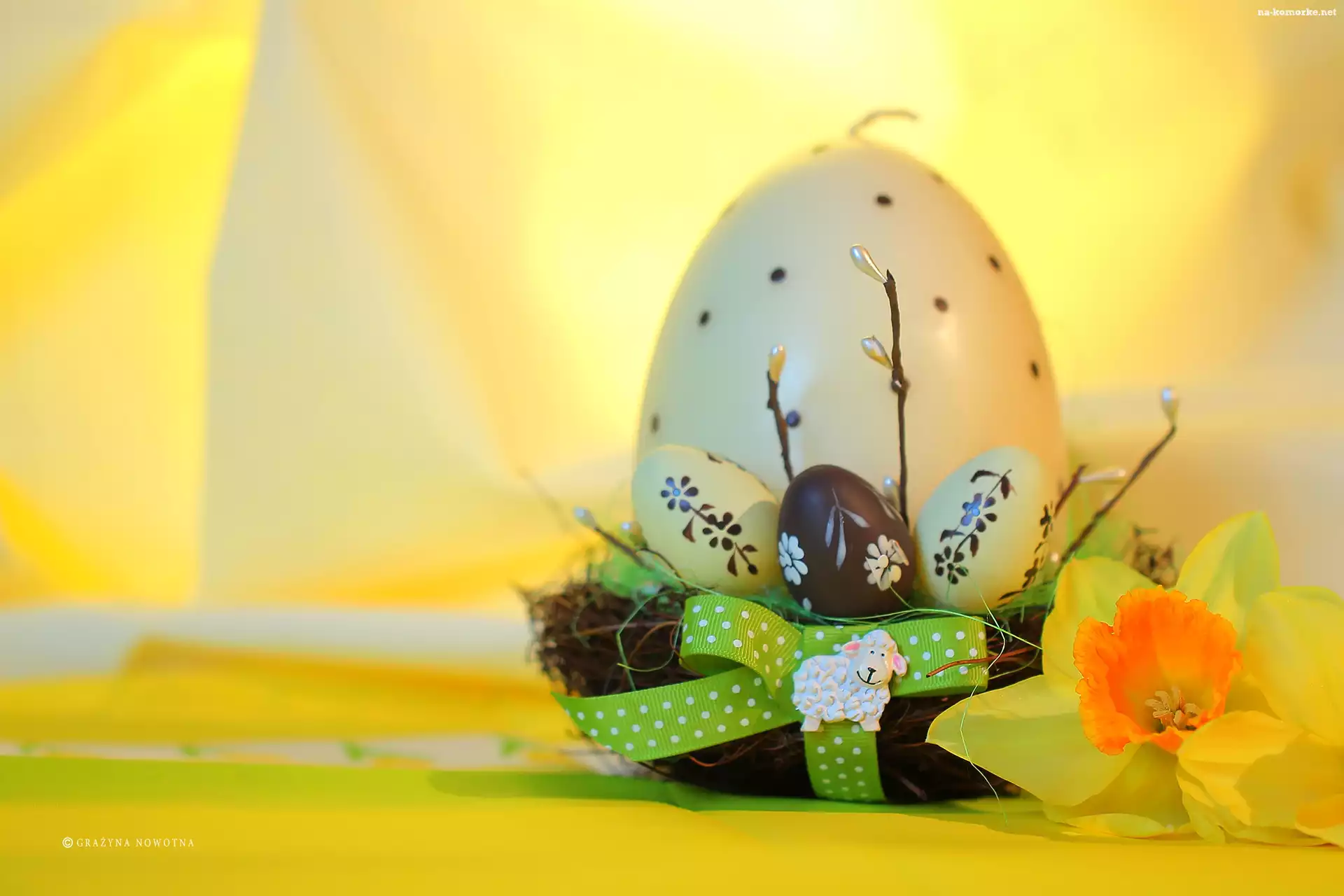 Żonkil, Jajeczka, Jajo, Wielkanoc, Ozdoba, Święta na Komórkę