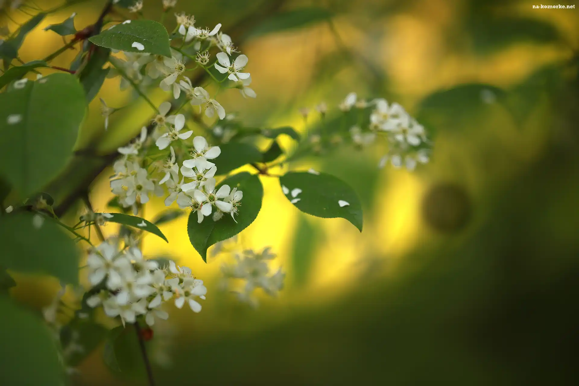 Kwiaty, Czeremcha, Białe, Opadające na Komórkę