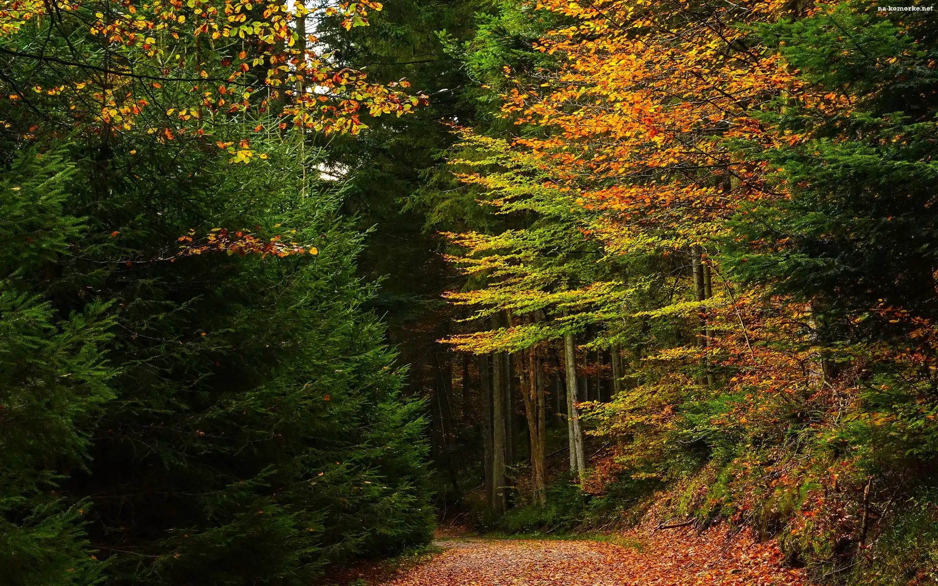 Opadłe, Las, Jesień, Ścieżka, Drzewa, Liście na Komórkę