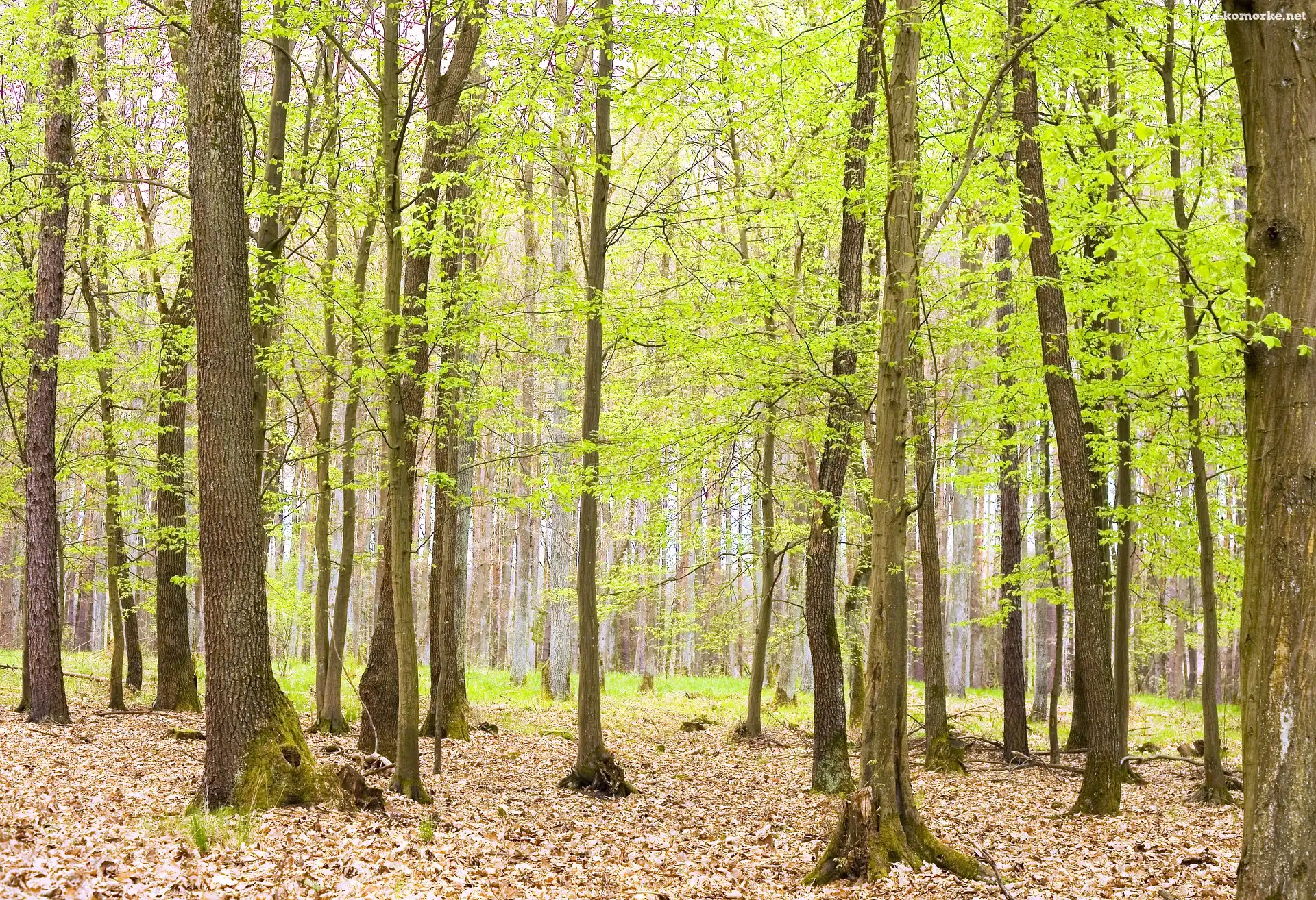 Drzewa, Opadłe liście, Wiosna, Las na Komórkę