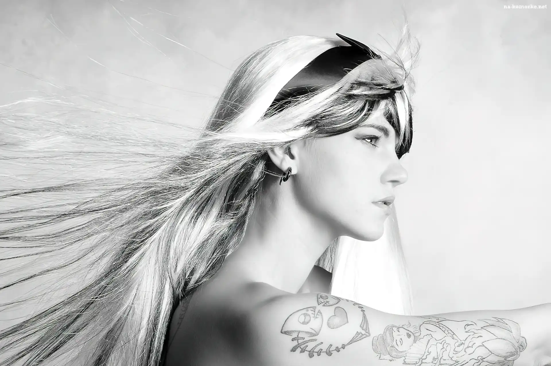 Kobieta, Czarno-Białe, Opaska, Tatuaże na Komórkę