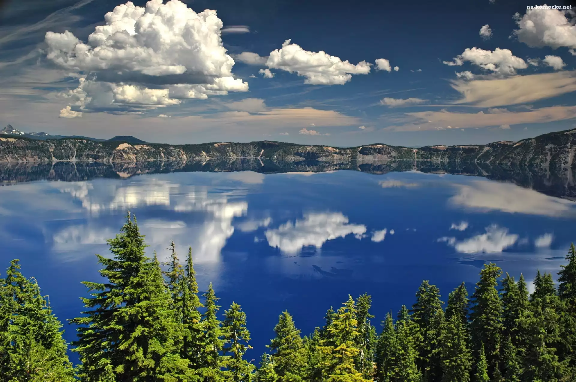 Oregon, Chmury, Jezioro, Drzewa na Komórkę