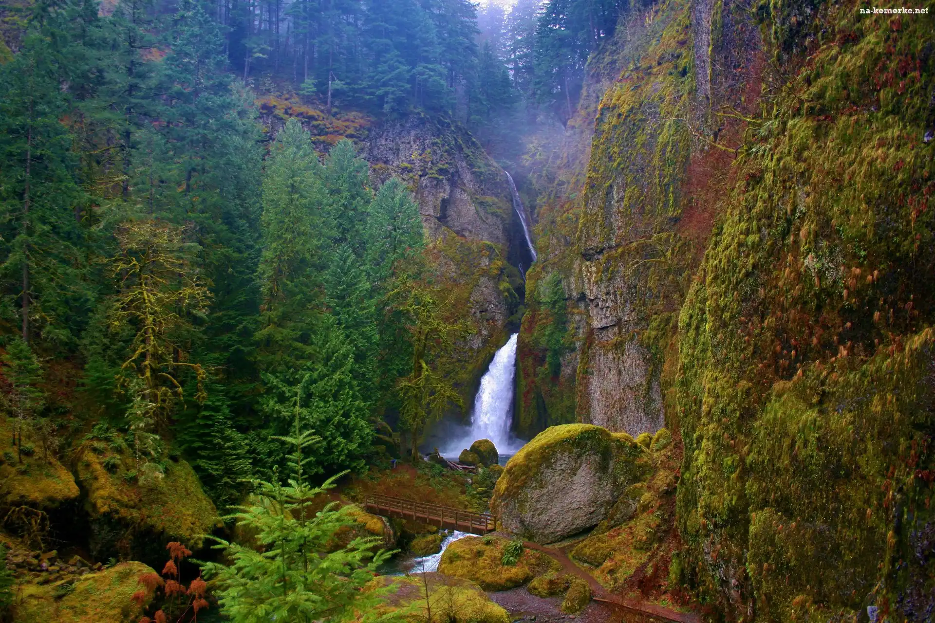 Oregon, Wodospad, Skały, Las, Wahclella na Komórkę