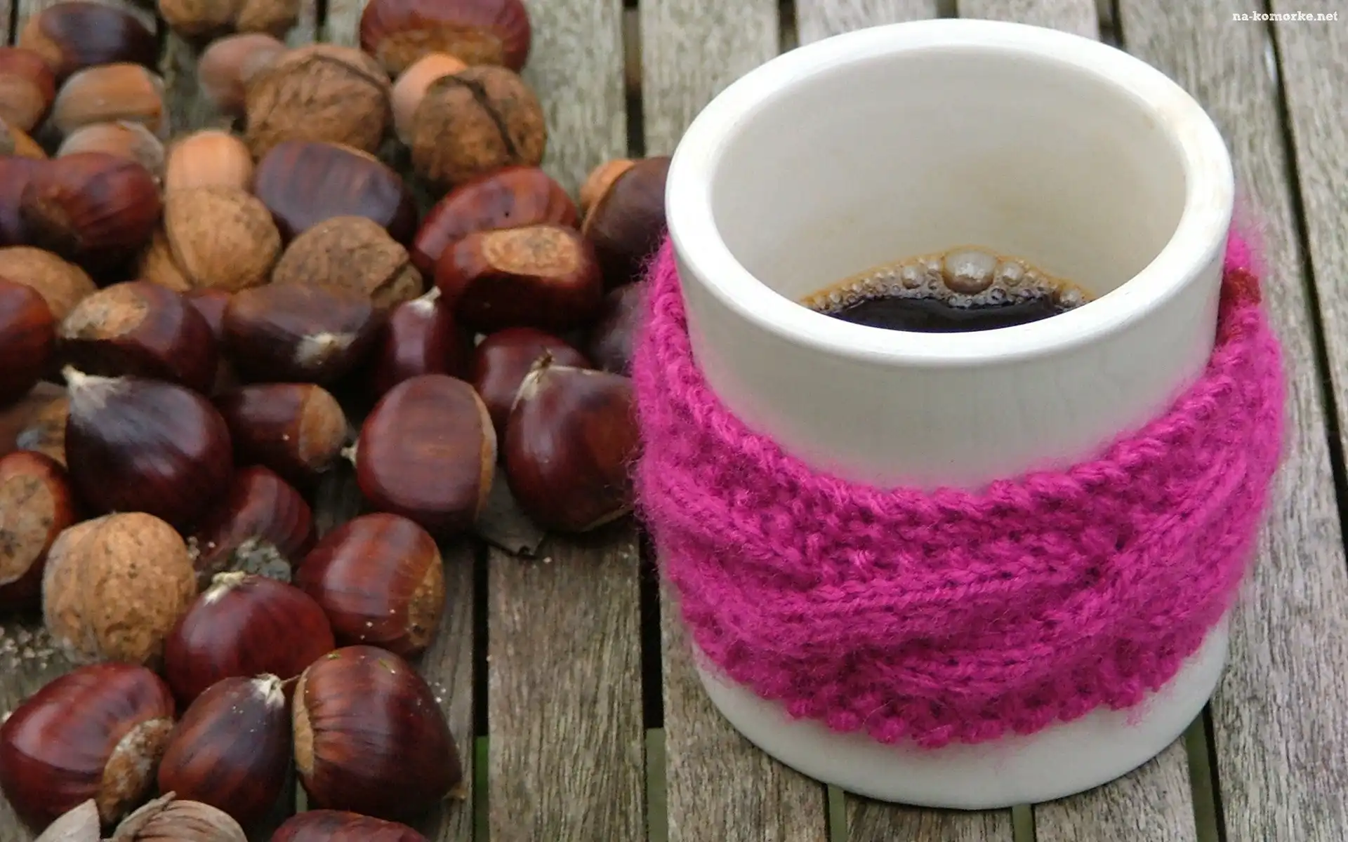 Kawa, Opaska, Orzechy, Kubek, Włóczka, Handmade, Wełniana na Komórkę