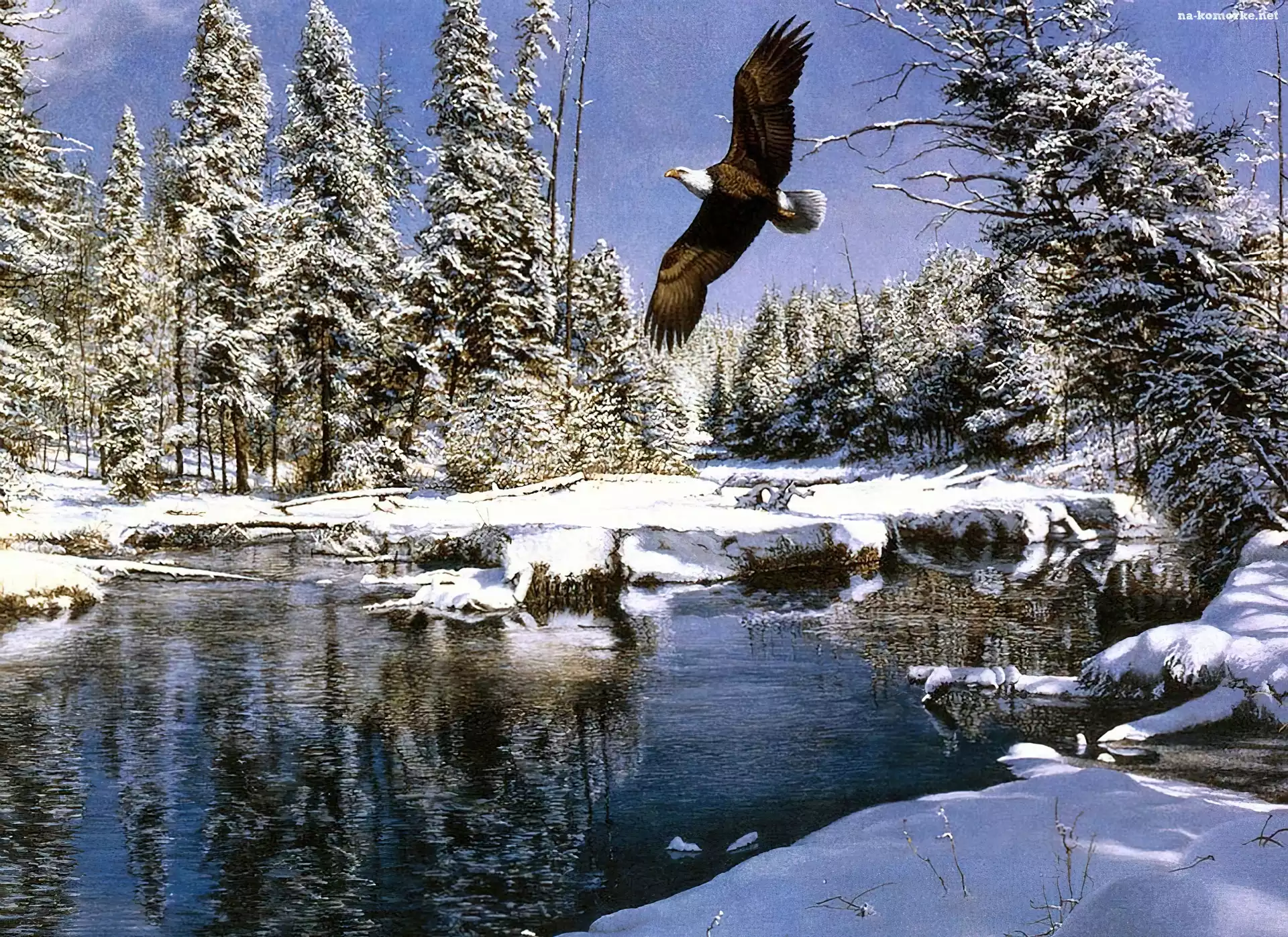 Orzeł, Jezioro, Zima, Las na Komórkę