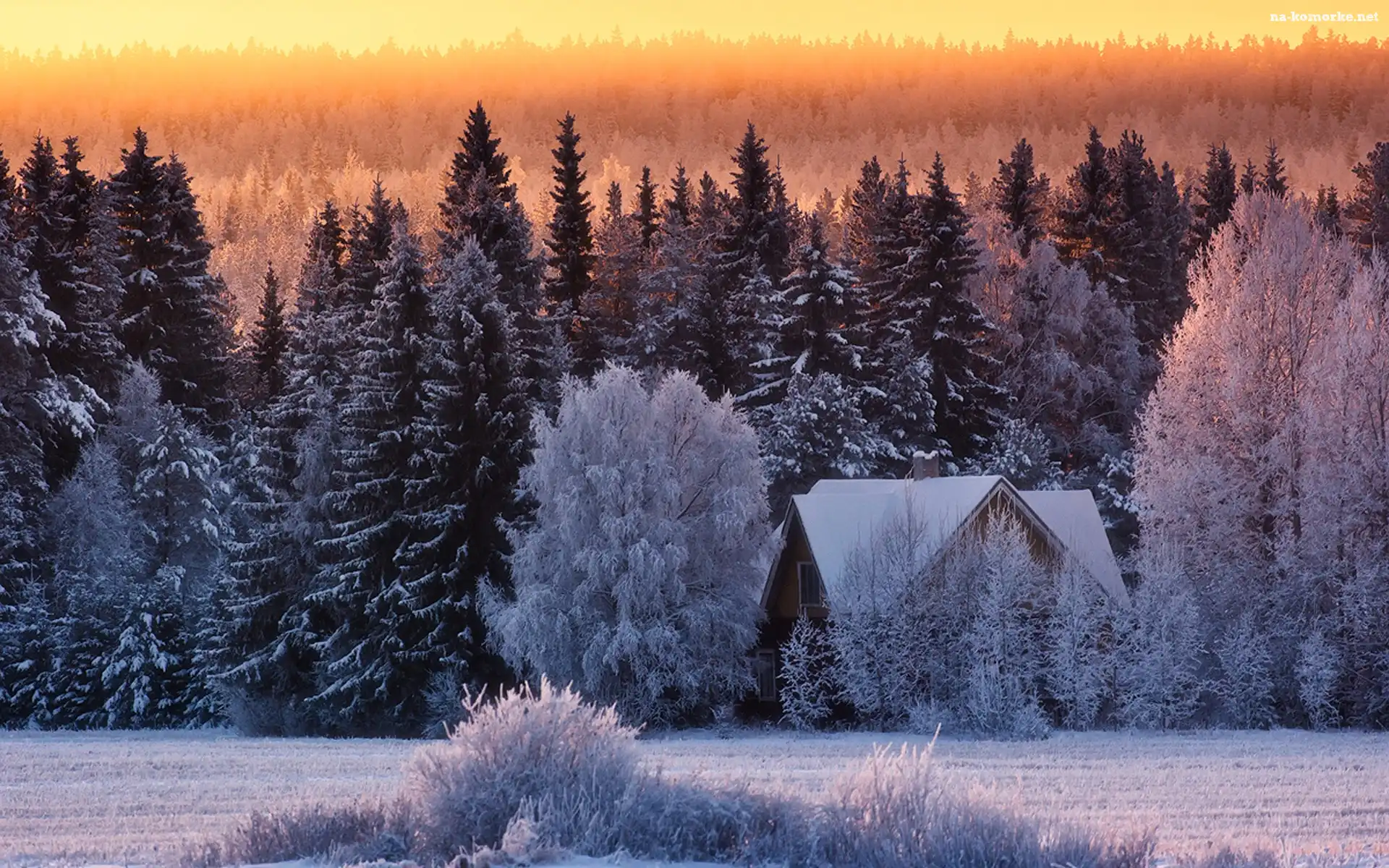 Domek, Ośnieżone, Drzewa na Komórkę