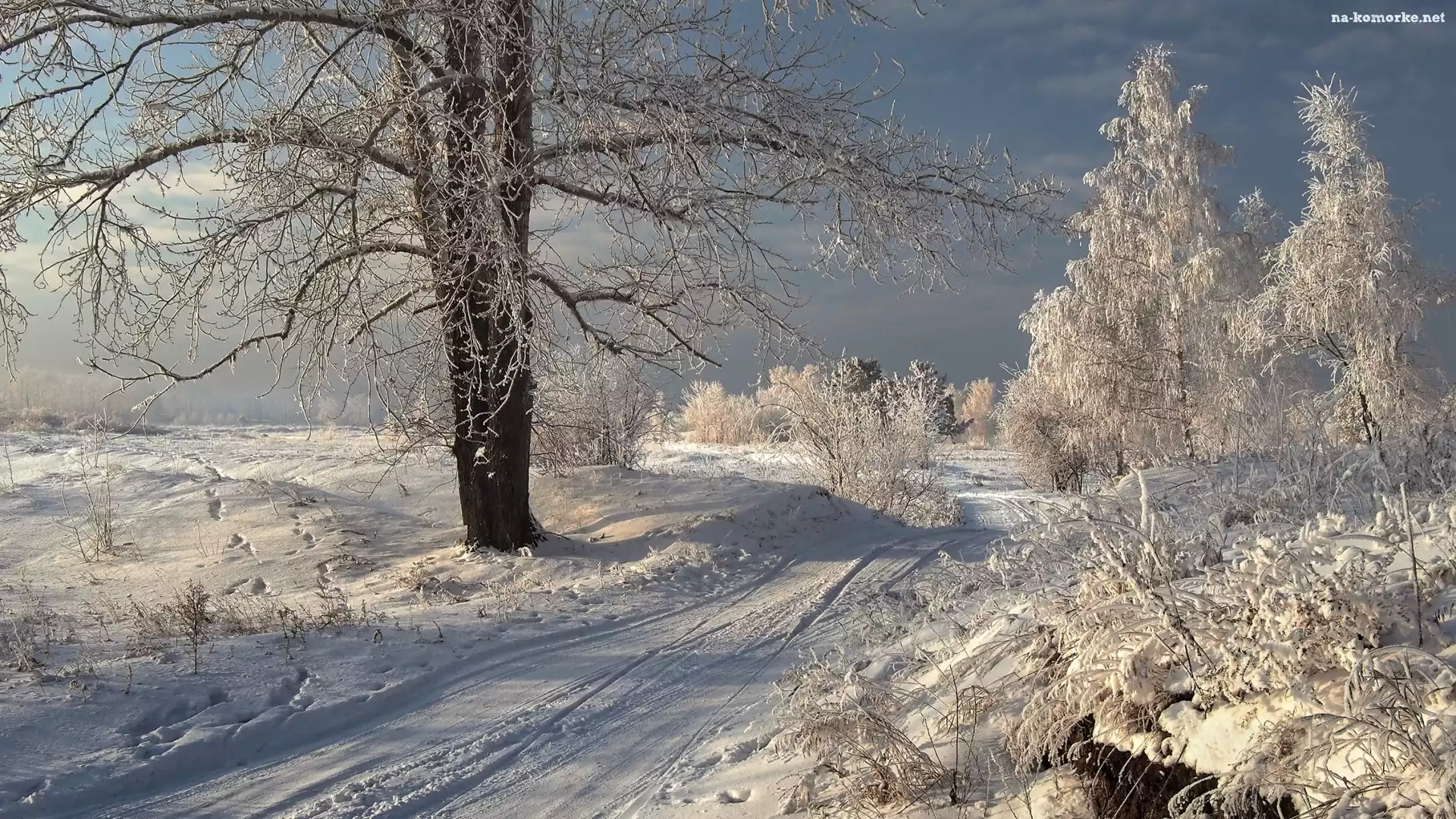 Zima, Ośnieżone, Drzewa, Droga, Krzewy na Komórkę