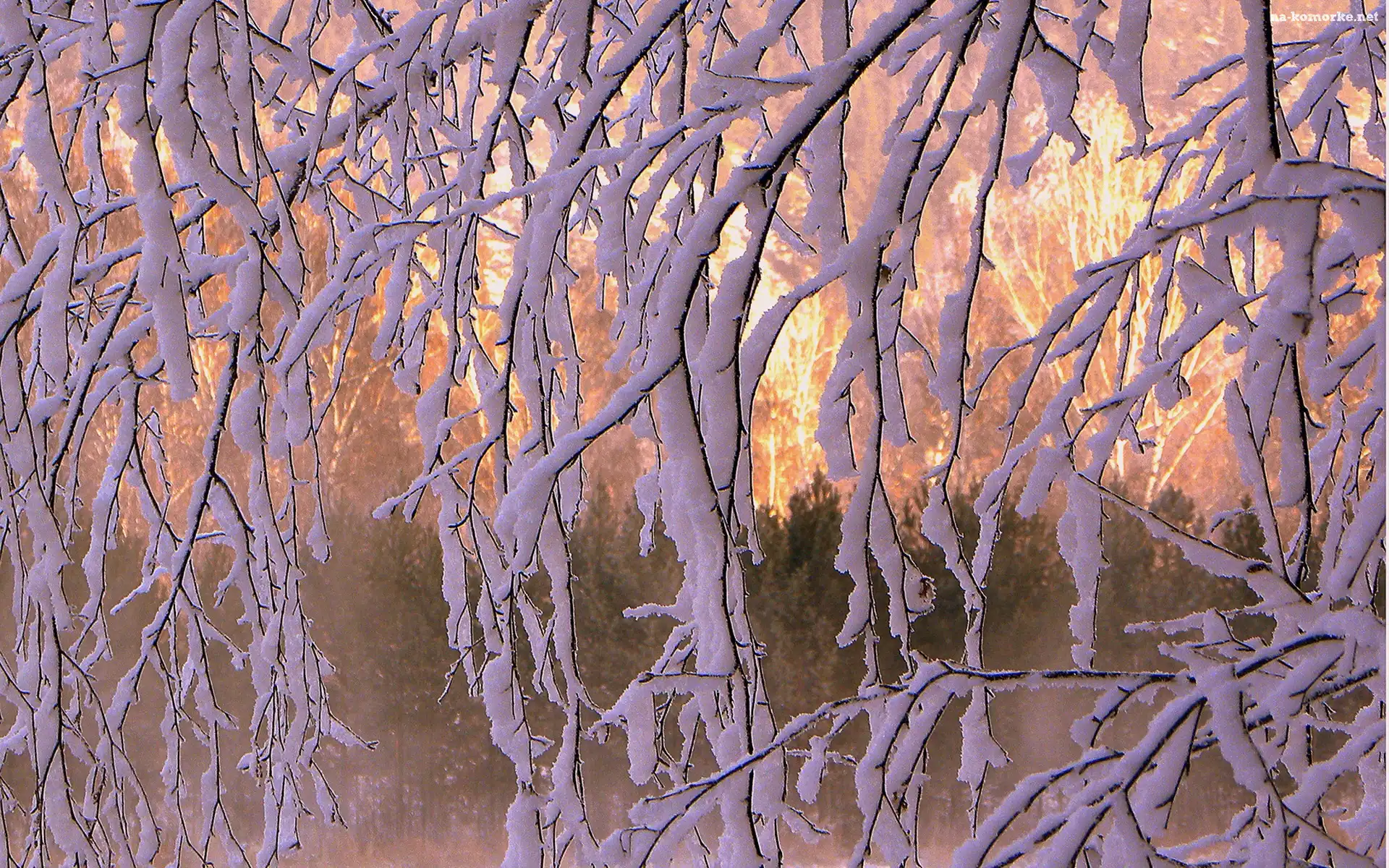 Ośnieżone, Światło, Gałęzie, Przebijające na Komórkę