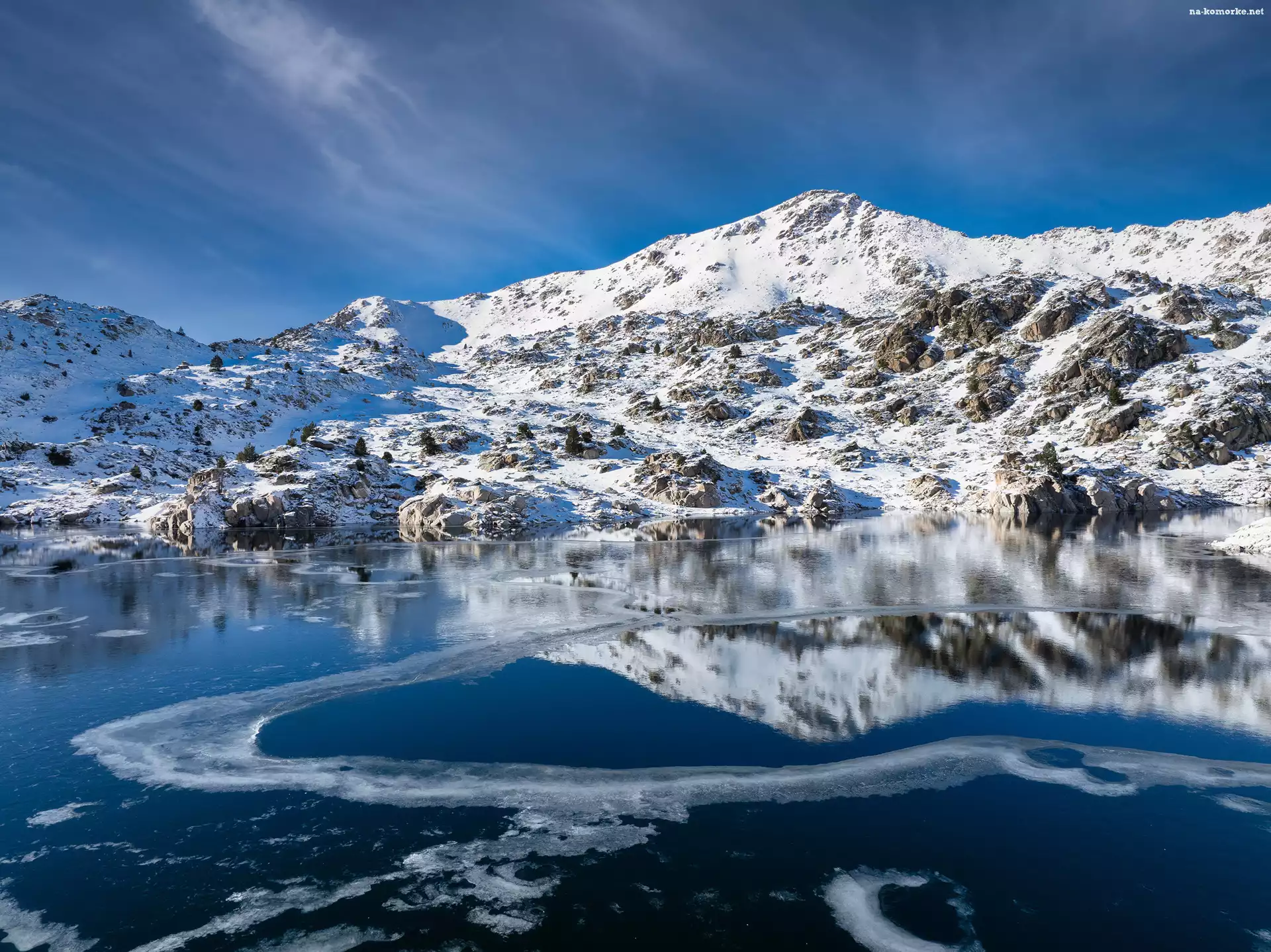Góry, Zima, Jezioro, Ośnieżone na Komórkę