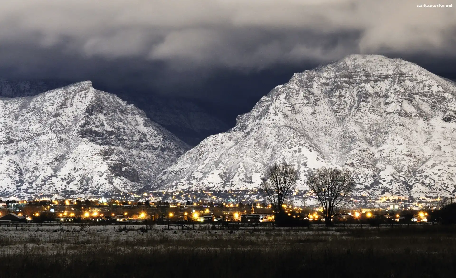 Ośnieżone, Miasteczko, Góry, Oświetlone na Komórkę