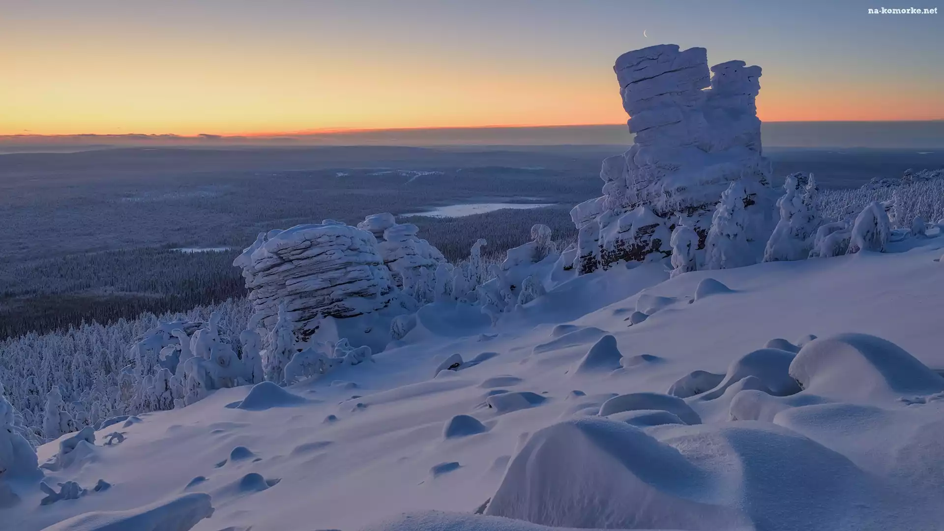 Ośnieżone, Zima, Śnieg, Skały, Drzewa na Komórkę