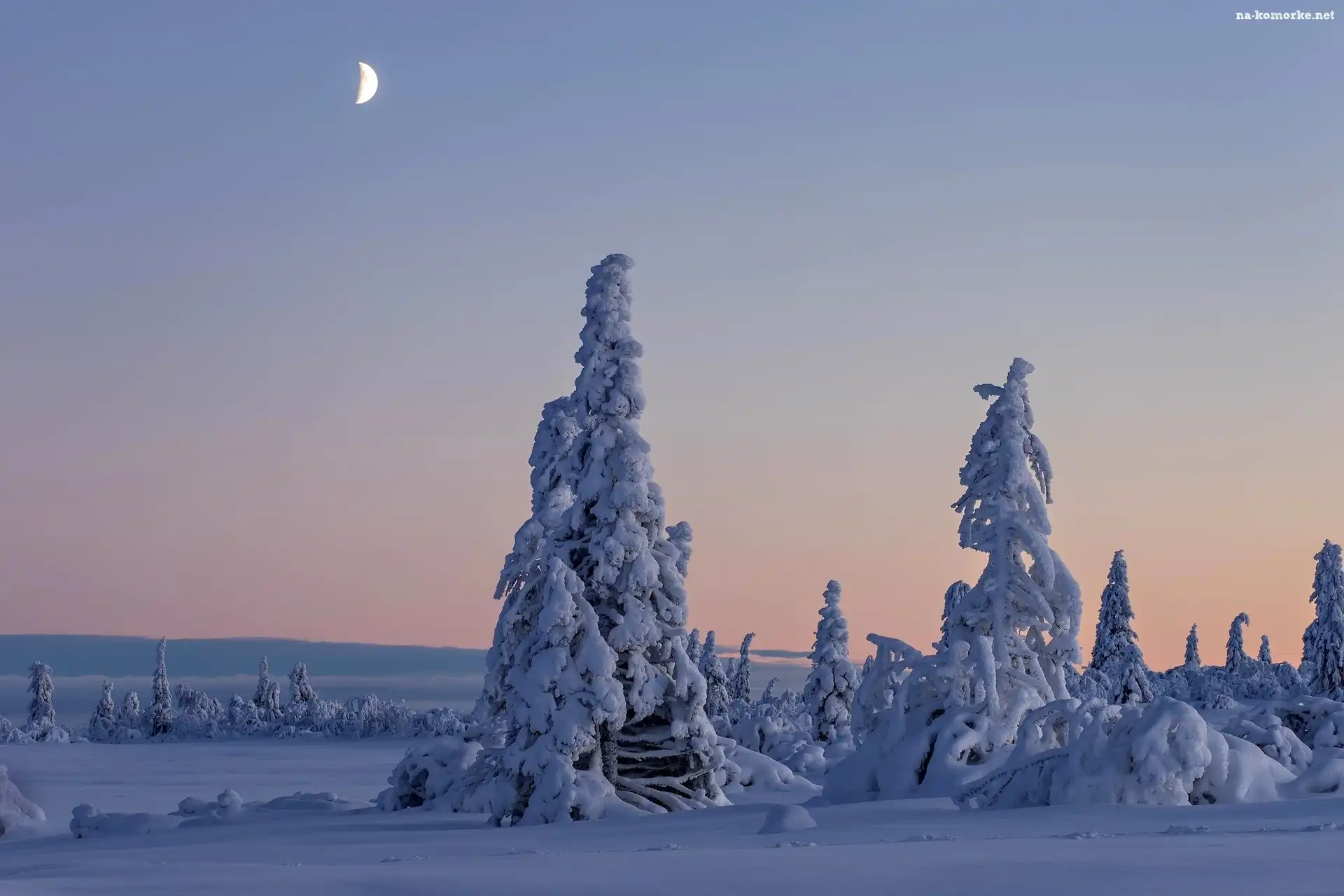 Zima, Ośnieżone, Drzewa na Komórkę