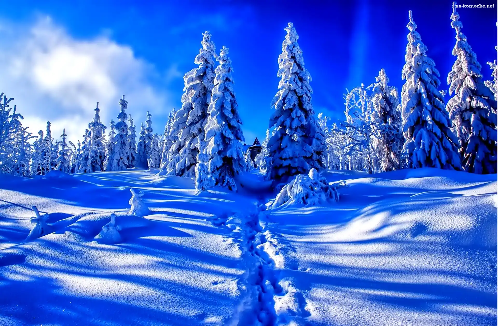 Zima, Ośnieżone, Świerki na Komórkę