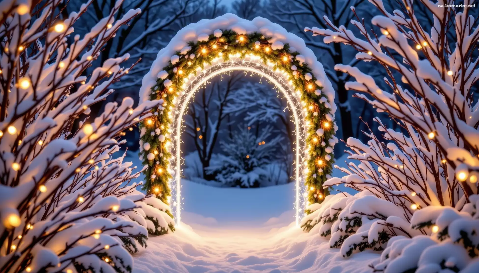 Łuk, Zima, Gałęzie, Oświetlony, Ośnieżone, Drzewa na Komórkę