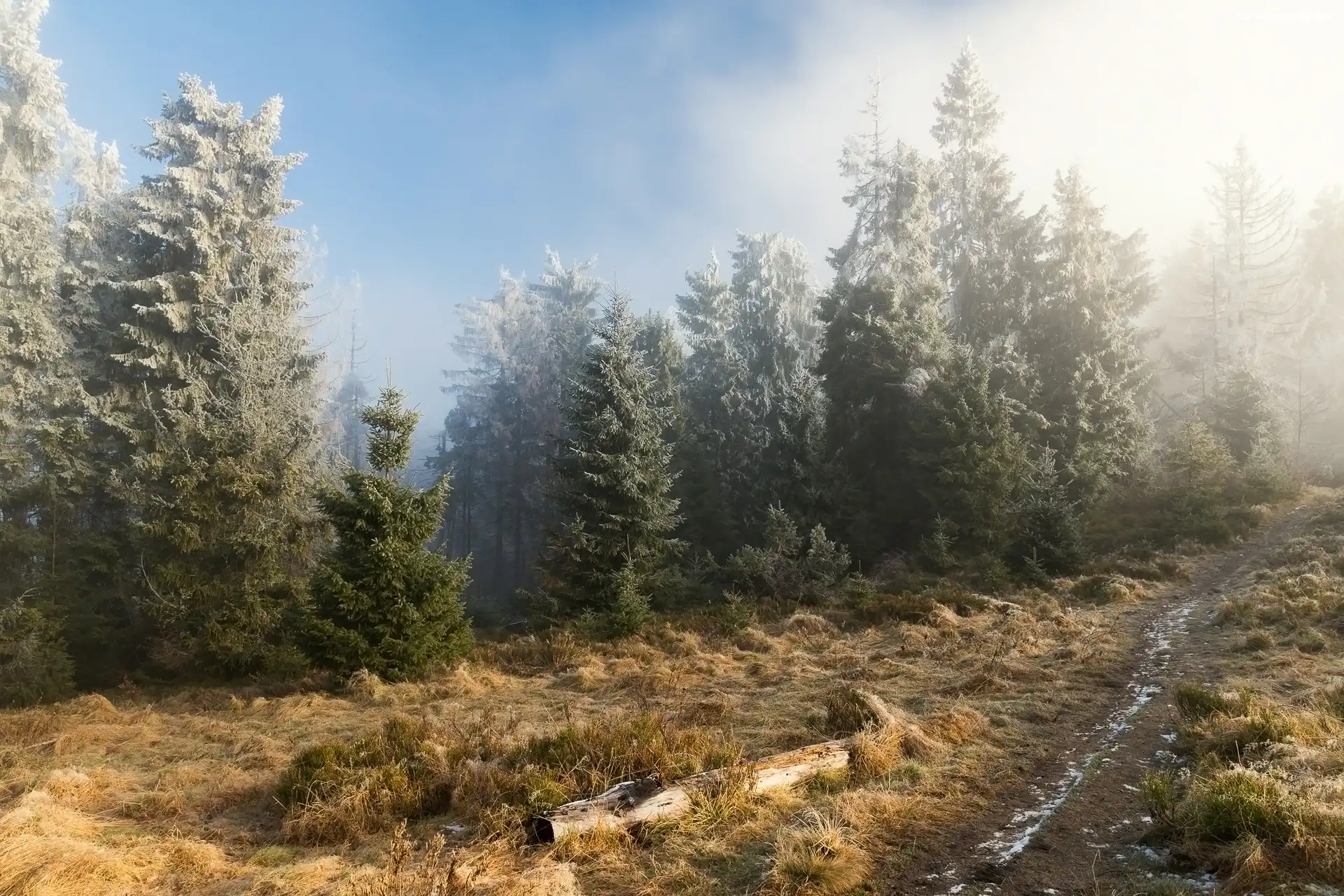 Oszronione, Mgła, Drzewa, Ścieżka na Komórkę