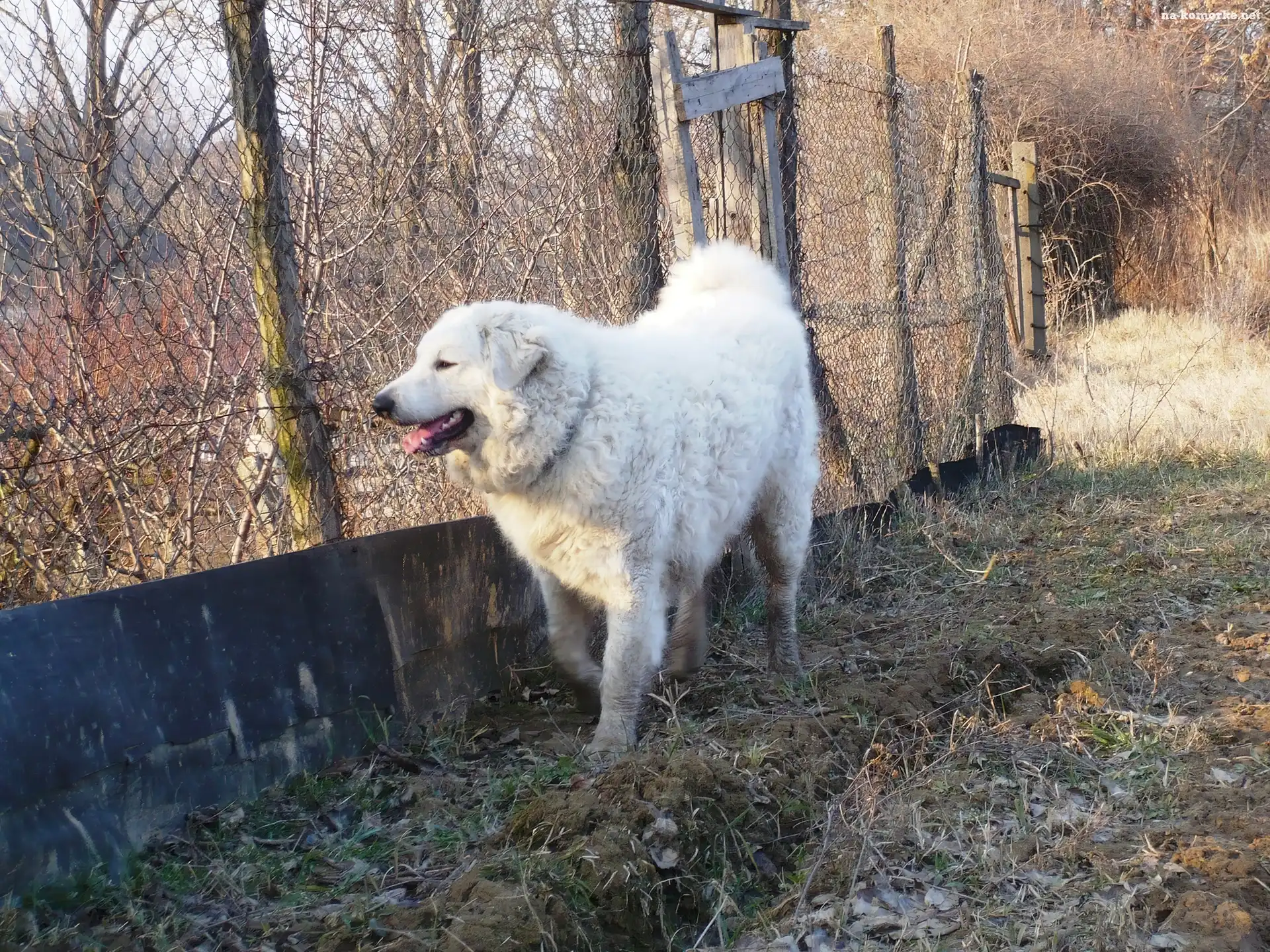 Owczarek węgierski Kuvasz, płot na Komórkę