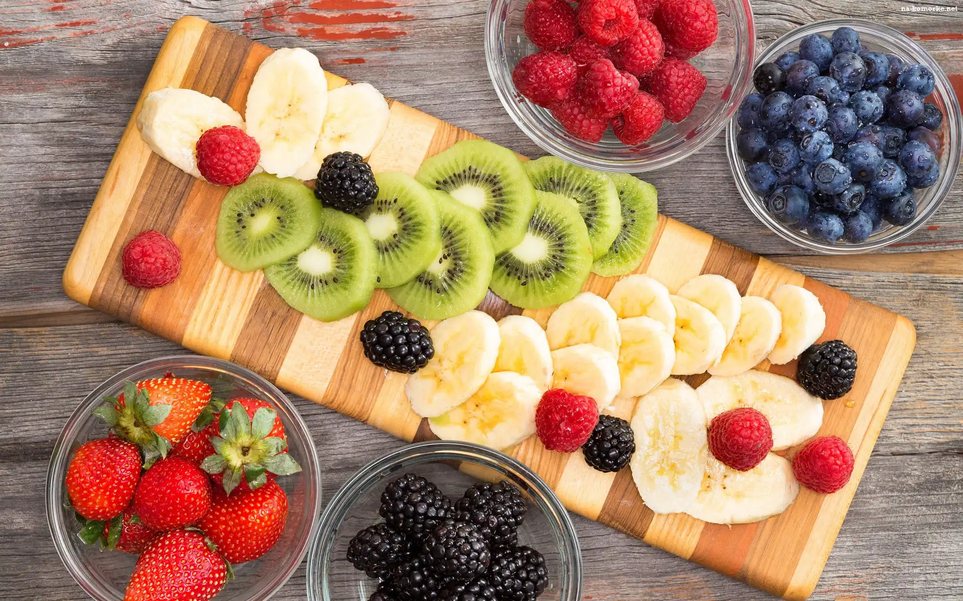 Owoce, Kiwi, Truskawki, Banany, Maliny na Komórkę